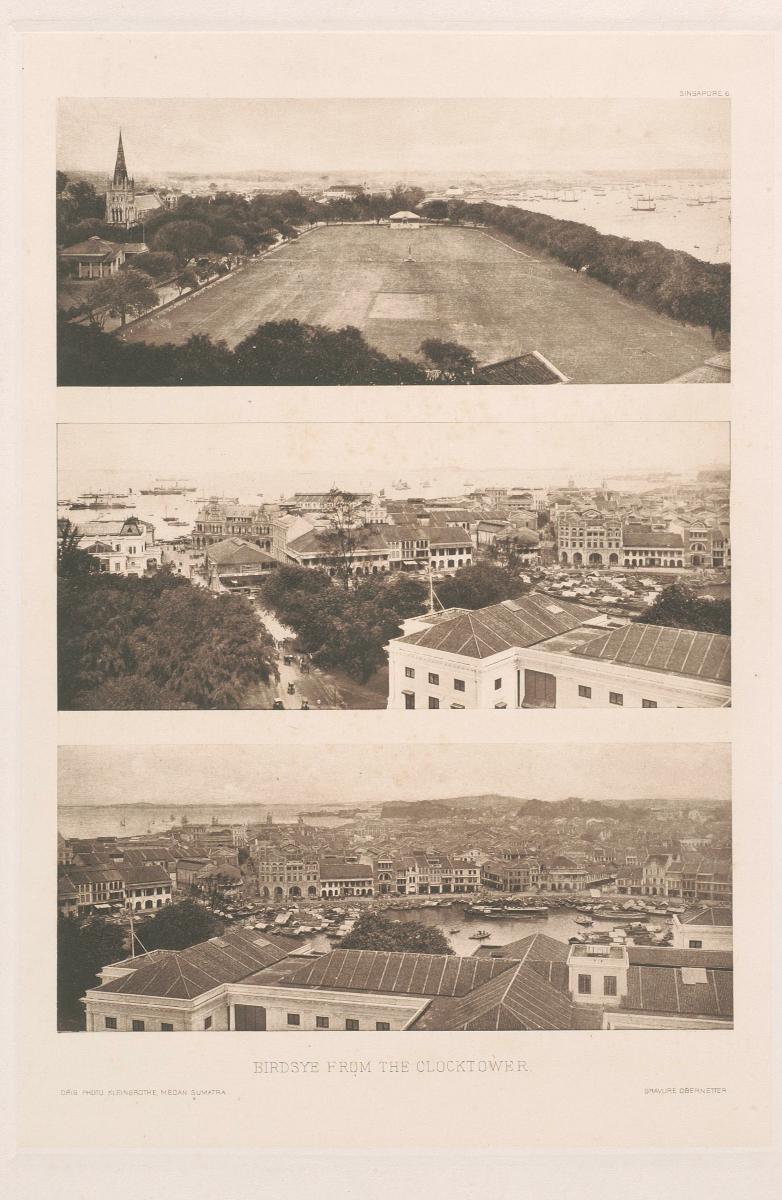 The open field on the north bank of the Singapore River next to the civic district was initially referred to as the Plain, Cantonment Plain, Raffles Plain or the Esplanade. In his 1822 town plan, Sir Stamford Raffles had reserved the area for public buildings but this plan was never fully carried out. The area was developed into a popular spot for members of colonial society to meet, socialise and play sports instead. Starting from 1834, the area was used to stage the annual New Year Regatta boat races, which soon expanded into the Sports Day. The establishment of the Singapore Cricket Club (1870) and the Signapore Recreation Club (1885) on opposite sides of the field ensured that it would be used for sporting activities. It was also a popular venue for the New Year’s Eve celebrations that included a waterfront fireworks display. In 1890, the coastline next to the field was pushed further out following land reclamation works at the Espanade area. The field itself was renamed the Padang in 1907 and soon became an important venue for civic events after City Hall (1929) and the Old Supreme Court Building (1939) were established beside it. Notable historic events that took place at the Padang include the Japanese surrender ceremony to the British in 1945 and the declaration of Singapore’s merger with Malaya in 1963. The Padang remains an important public space that is still used to stage important national events such as the annual National Day Parade.