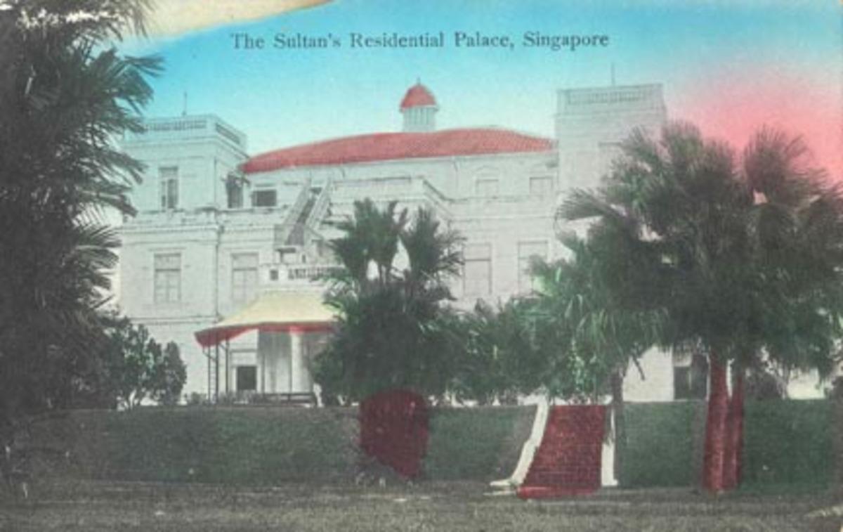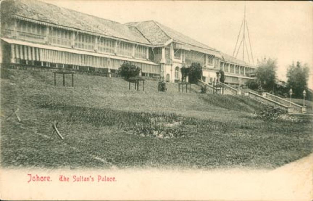 This coloured postcard depicts Istana Tyersall, the palatial residence of Sultan Abu Bakar of Johor in early 20th century Singapore. The palace, located adjacent to the Botanic Gardens, spanned 67 acres of garden. Originally owned by William Napier, a prominent solicitor and one of the founders of the Singapore Free Press, the land was later acquired by the Sultan of Johor. He had the palace built in place of Napier’s former house and expanded the gardens. Completed in 1892, Istana Tyersall suffered significant damage in a fire in 1905.