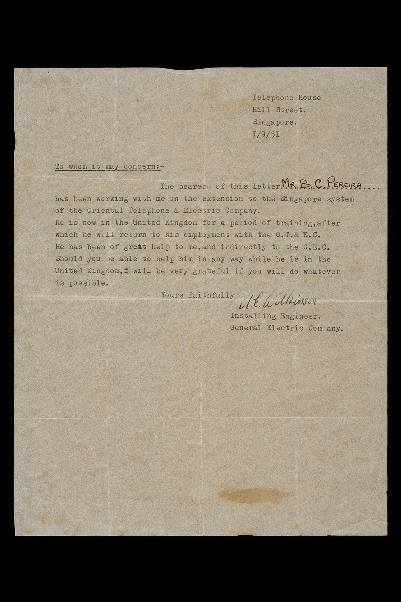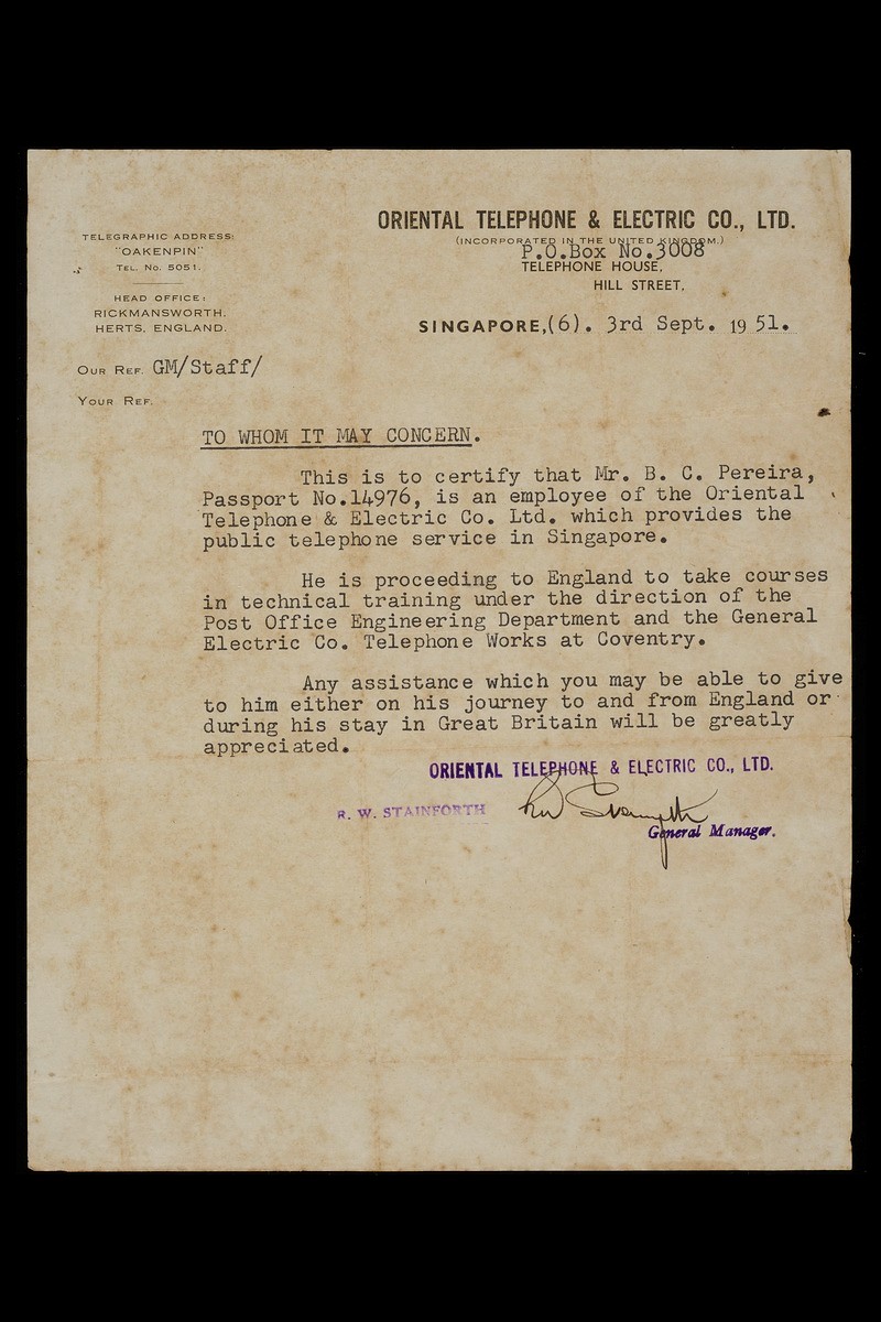 This is a letter from a Singapore Gas Company employee concerning company business.