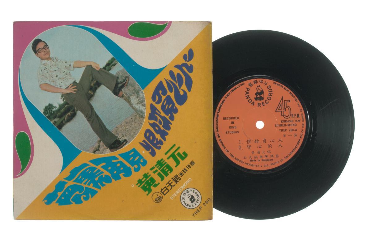 This 45 rpm record was produced by Panda Records.With a singing career that spanned more than 40 years, the name Huang Qing Yuan or Wong Ching Yian will ring a bell to those who remember the local popular music scene of the 1960s and 1970s. In 1965, Huang won the singing competition organised by the Ministry of National Development in which he sang 'Serenade of the Green Island’ (《绿岛小夜曲》, Ludao Xiaoyequ), a Chinese classic. Huang’s fame soared and he went on to release several records thereafter.