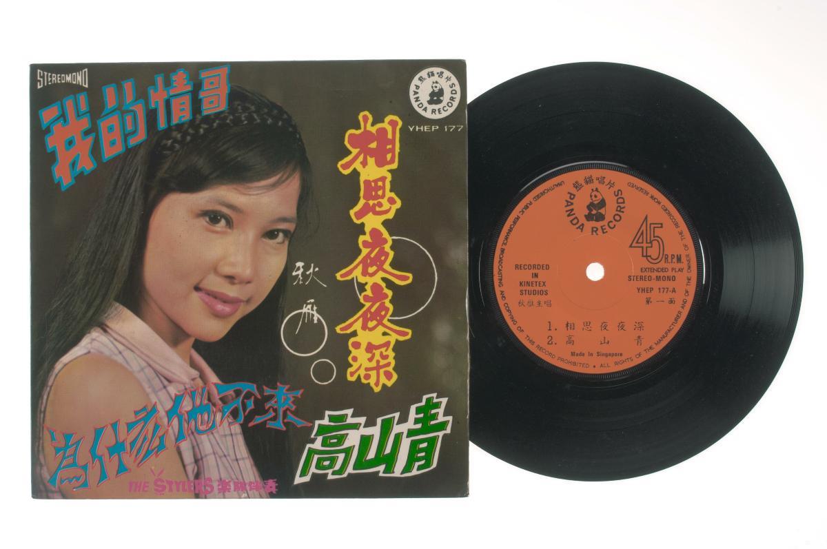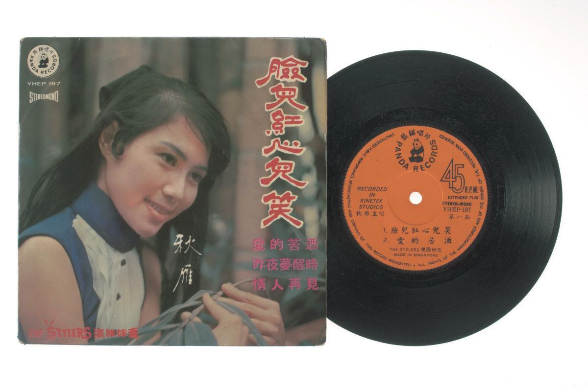 This 45 rpm record was produced by Panda Records. Chiu Yen was noted for her rendition of the hit ‘Xinsheng Leiheng’ (《心声泪痕》).