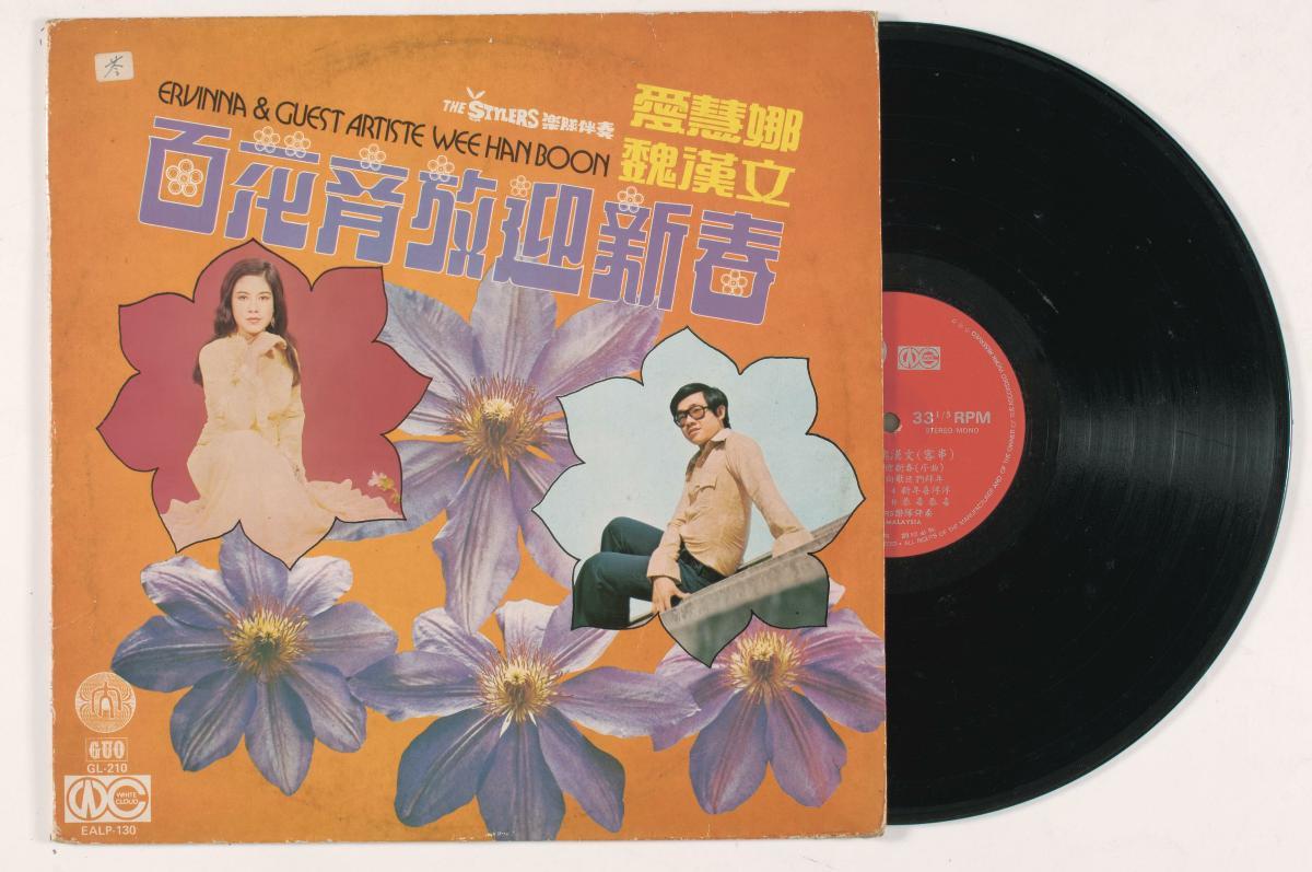 This Chinese vinyl record features songs by singers Wee Han Boon (魏汉文) and You Qing (尤菁). The 33 rpm record was produced by Great Union Organization In the 1960s, many saw the lucrative business potential in the local Chinese pop music market which led to a mini boom in the industry. Small recording companies sprouted, attracting many aspiring singers. By the 1980s, Singapore rivalled Taiwan as the Mandarin pop capital in Asia, with its quality recording and production facilities. This vinyl record is part of the museum’s collection of Chinese pop releases in Singapore and Malaysia from 1965 to the early 1980s, prior to the ‘Xin Yao’ movement in the mid-1980s. The collection comprises of 45 rpm and 33 rpm recordings of local talents released by Singapore and Malaysian production companies, as well as foreign releases that featured Singaporean artists. The collection provides invaluable aural information on the history of popular music in Singapore.