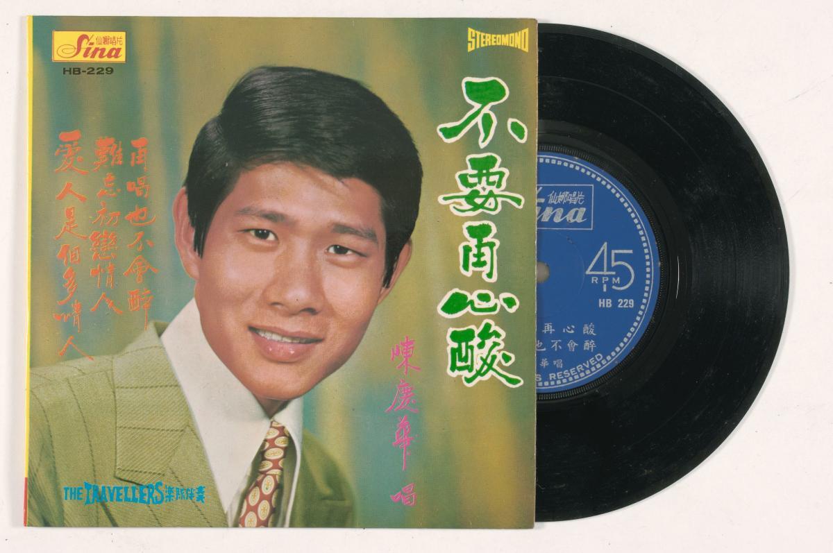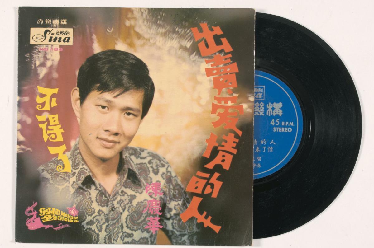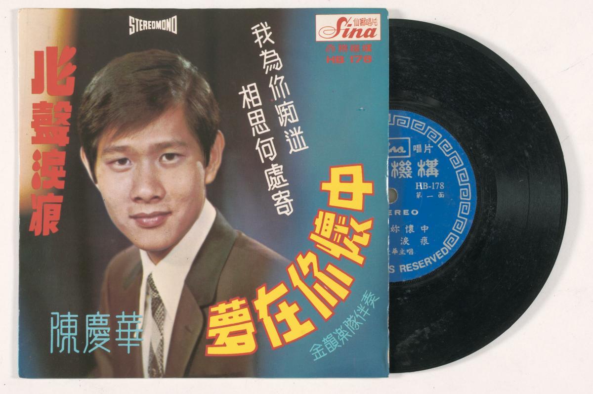 This Chinese vinyl record features songs by singer Chen Qing Hua (陈庆华) with accompanying music by the band The Travellers. The 45 rpm record was produced by Sina Record. In the 1960s, many saw the lucrative business potential in the local Chinese pop music market which led to a mini boom in the industry. Small recording companies sprouted, attracting many aspiring singers. By the 1980s, Singapore rivalled Taiwan as the Mandarin pop capital in Asia, with its quality recording and production facilities. This vinyl record is part of the museum’s collection of Chinese pop releases in Singapore and Malaysia from 1965 to the early 1980s, prior to the ‘Xin Yao’ movement in the mid-1980s. The collection comprises of 45 rpm and 33 rpm recordings of local talents released by Singapore and Malaysian production companies, as well as foreign releases that featured Singaporean artists. The collection provides invaluable aural information on the history of popular music in Singapore.