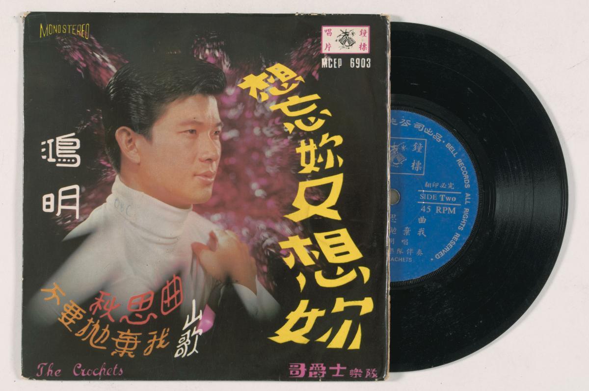 This Chinese vinyl record features songs by singers Xiao Ping (小萍) and Hong Ming (宏鸣). This is a 45 rpm record. In the 1960s, many saw the lucrative business potential in the local Chinese pop music market which led to a mini boom in the industry. Small recording companies sprouted, attracting many aspiring singers. By the 1980s, Singapore rivalled Taiwan as the Mandarin pop capital in Asia, with its quality recording and production facilities. This vinyl record is part of the museum’s collection of Chinese pop releases in Singapore and Malaysia from 1965 to the early 1980s, prior to the ‘Xin Yao’ movement in the mid-1980s. The collection comprises of 45 rpm and 33 rpm recordings of local talents released by Singapore and Malaysian production companies, as well as foreign releases that featured Singaporean artists. The collection provides invaluable aural information on the history of popular music in Singapore.