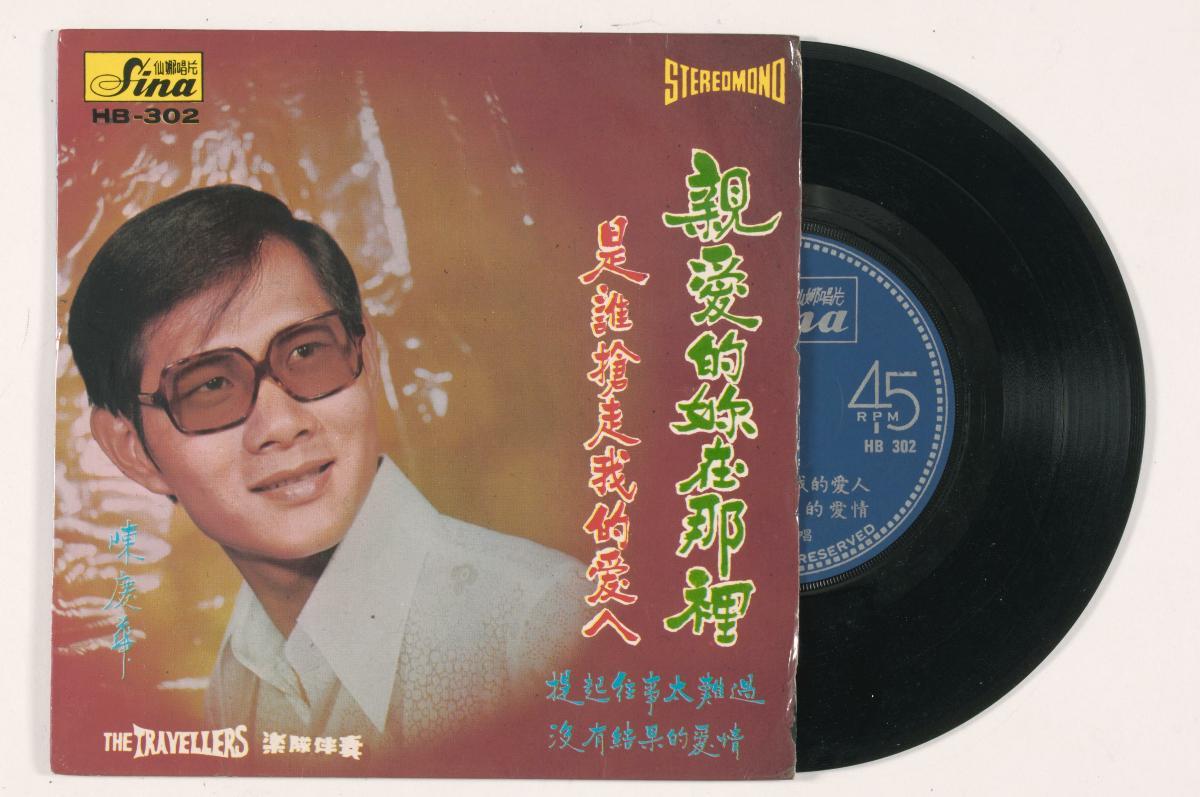 This Chinese vinyl record features songs by singer Chen Qing Hua (陈庆华) with accompanying music by the band The Travellers. The 45 rpm record was produced by Sina Record. In the 1960s, many saw the lucrative business potential in the local Chinese pop music market which led to a mini boom in the industry. Small recording companies sprouted, attracting many aspiring singers. By the 1980s, Singapore rivalled Taiwan as the Mandarin pop capital in Asia, with its quality recording and production facilities. This vinyl record is part of the museum’s collection of Chinese pop releases in Singapore and Malaysia from 1965 to the early 1980s, prior to the ‘Xin Yao’ movement in the mid-1980s. The collection comprises of 45 rpm and 33 rpm recordings of local talents released by Singapore and Malaysian production companies, as well as foreign releases that featured Singaporean artists. The collection provides invaluable aural information on the history of popular music in Singapore.