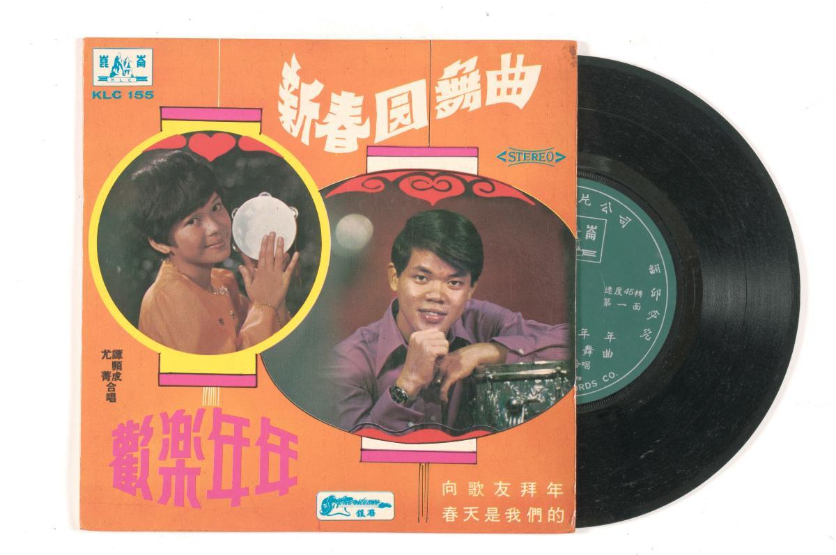 This Chinese vinyl record features songs by singers Tan Shun Cheng (谭顺成) and You Jing (尤菁), with accompanying music by the band The Silverstones (银石乐队, Yinshiyuedui). The 45 rpm record was produced by KLC Records (昆仑唱片有限公司, Kunlunchangpianyouxiangongsi).