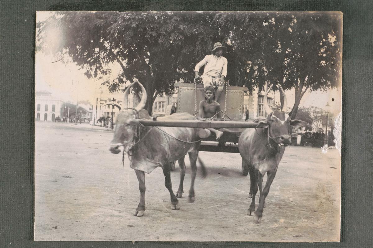 This photograph shows a horse-drawn carriage photographed with an Indian driver. Such carriages were a common mode of transport among the Europeans in Singapore and Malaya before the Japanese Occupation and were not a rare sight on the roads. These kinds of ‘gharries’ were smaller carriages that were for hire. They usually crowded the streets in the business area or the town centre. The rest of the population preferred rickshaws and other modes of public transport. Horse-drawn carriages and ‘gharries’ were replaced by electric trams and automobiles in the early decades of the 20th century. These ‘gharries’ were a unique feature of colonial Singapore, and this photograph was probably taken for documentation purposes. It might have been sent back to be published in Europe to allow the home public to understand more about the locals in their country’s overseas colonies