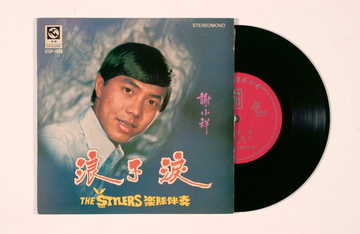 This Chinese vinyl record features songs by singer Xie Xiao Xiang (谢小祥), with accompanying music by the band The Stylers. The 45 rpm record was produced by Chuan Tat Trading Co. (泉达贸易公司, Quandamaoyigongsi).