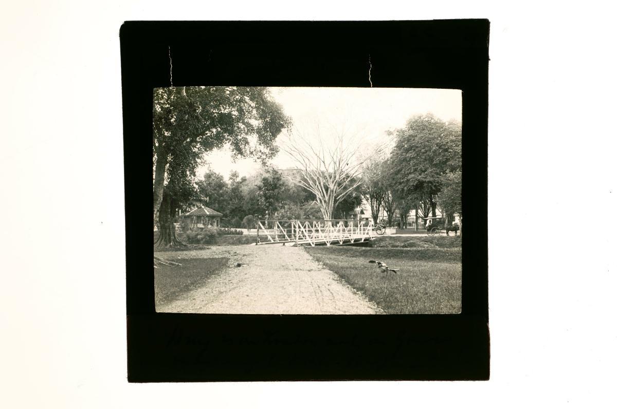 Prior to George Eastman’s invention of rolled photographic films in 1883, glass plates coated with light-sensitive materials were used as negatives. Two main types of glass plate negatives were invented in the latter half of the 19th century – the wet collodion negative in 1851 and the gelatin dry plate negative in 1879. After exposure, an image captured on a glass plate negative would be developed using chemicals, and subsequently printed onto an albumen-coated paper or a glass plate. Images printed on the latter were known as glass lantern slides as they could be projected onto a wall or screen using an image projector, commonly called a “magic lantern”. Picture slideshows featuring glass lantern slides became a popular medium for entertainment and education from the mid-19th century to the early 20th century. The black-and-white slides would often be colour-tinted by hand to enhance their visual effects on the screen.
