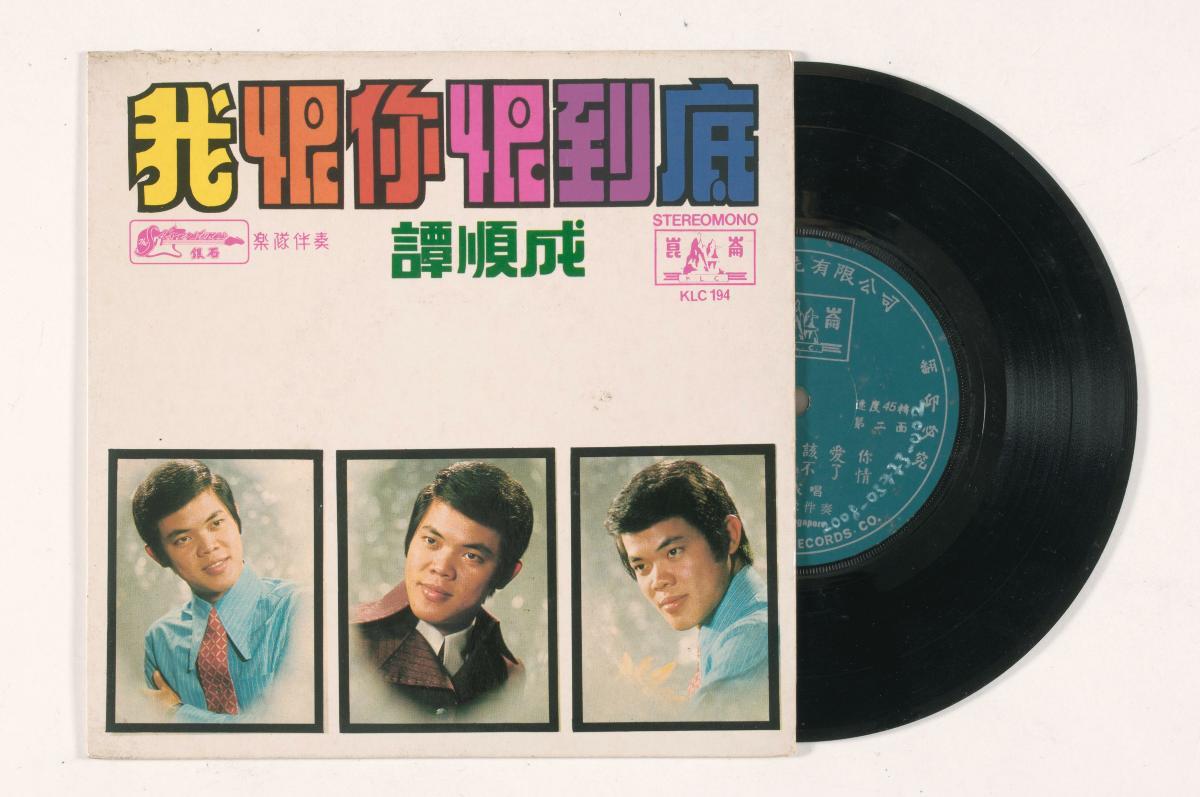 This Chinese vinyl record features songs by singer Tan Shun Cheng (谭顺成), with accompanying music by the band The Silverstones (银石乐队, Yinshiyuedui). The 45 rpm record was produced by KLC Records (昆仑唱片有限公司, Kunlunchangpianyouxiangongsi).