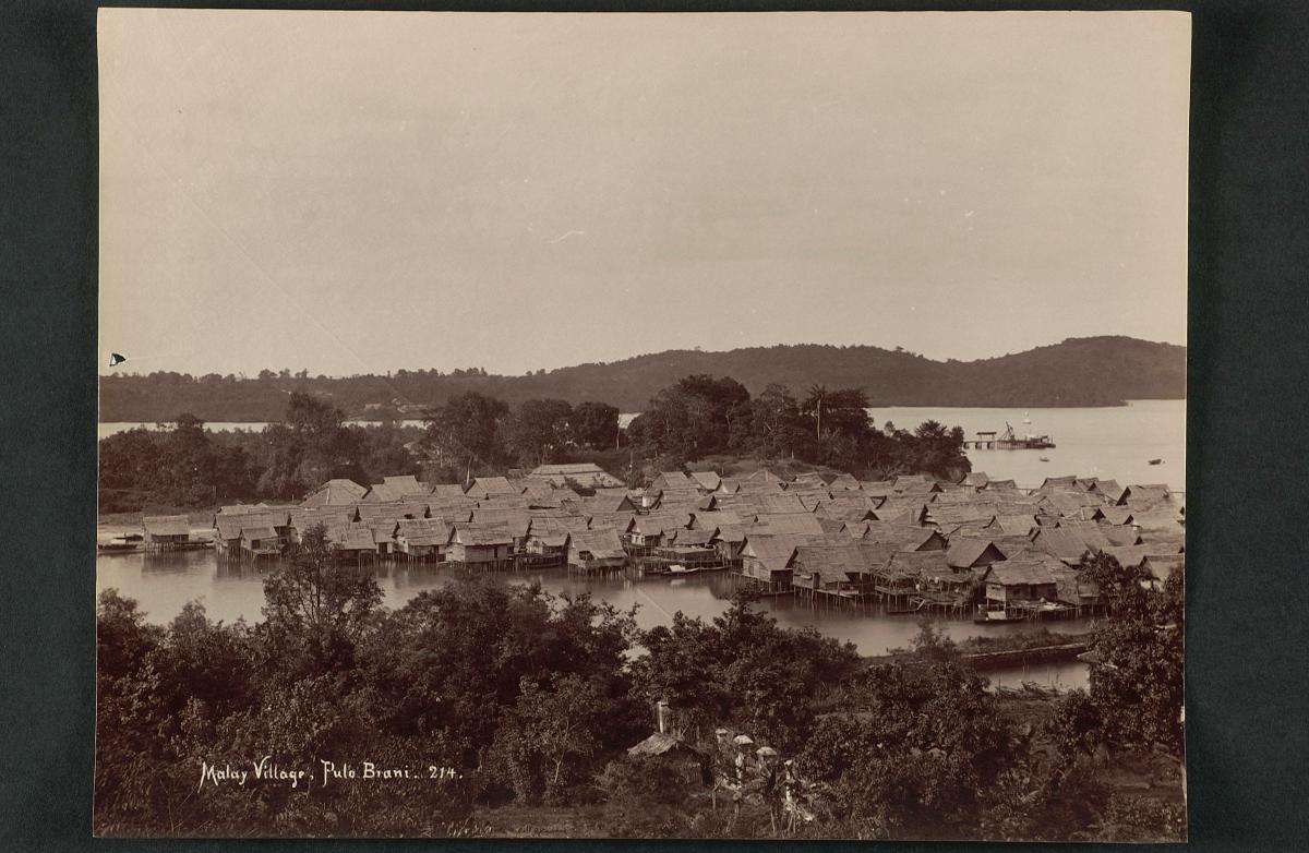 The photograph is part of an album which consists of photographs related to the activities of The Royal Antediluvian Order of Buffaloes (R.A.O.B.) as well as the sights and scenes of Singapore and Malaysia.Pulau Brani (Island of the Brave) is located between the main island and Sentosa. The Straits Trading Company built a tin smelting plant on the island in 1890. There were also several ‘kampongs’ (villages) on Pulau Brani, such as Kampong Selat Sengkir, Kampong Kopit and Kampong Telok Saga.The factory and villagers eventually moved out in the 1960s to make way for the Brani Naval Base. The base officially closed in 2002. The Brani Container Terminal was opened on the island in 1992 while the Police Coast Guard Headquarters was built at the southern part of Pulau Brani in 2006.