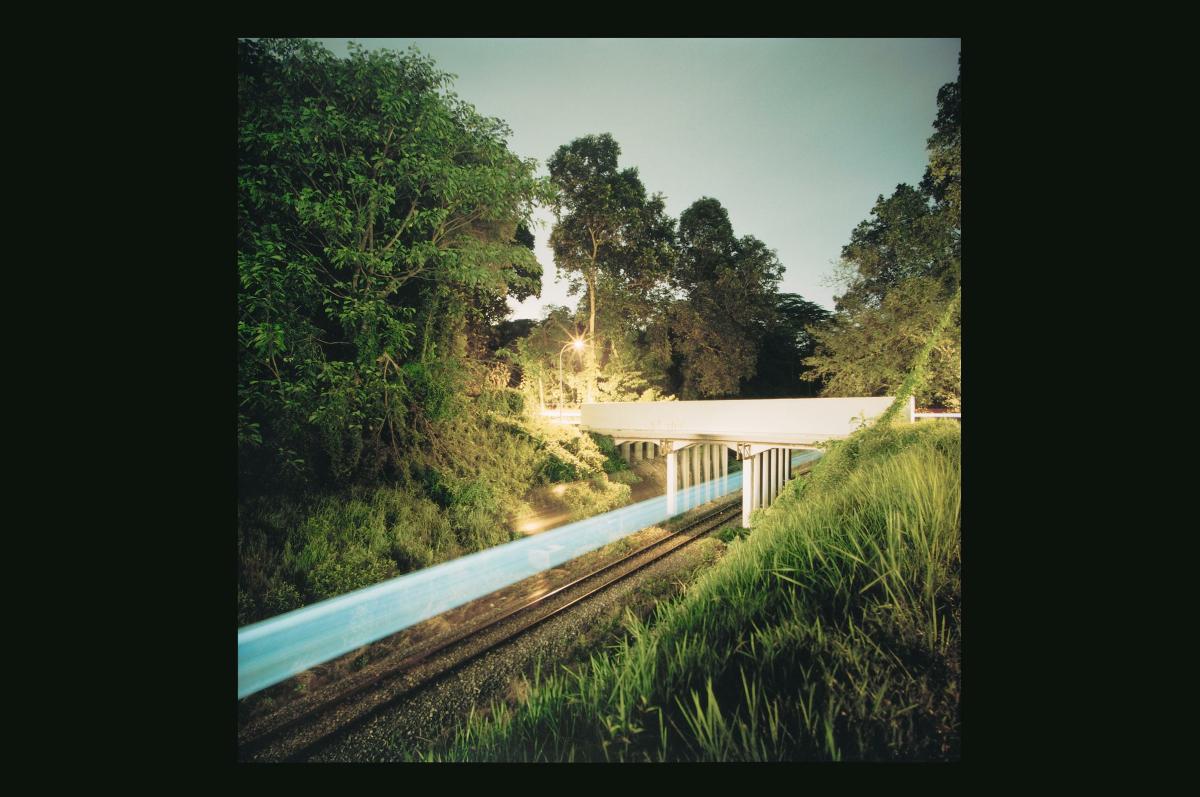 This is a photograph of the Malaysian KTM passenger train Senandung Sutera (SS) 24 near Choa Chu Kang after passing Stagmont Ring crossing at 1055pm. The SS24 was the last train to depart from the Tanjong Pagar Railway Station for the Malaysian capital of Kuala Lumpur every night when the route was still in service.The photograph is part of a series of images of the SS24 taken by award-winning Singapore photographer Darren Soh, who spent several months capturing images of the train along its nightly route. The first 26 images in the series are in chronological order, charting the train's journey from Tanjong Pagar to Woodlands. The last two photographs capture the final journey of the SS24 on 30 June 2011 before the seizure of railway operations at the Tanjong Pagar station on 1 July. To mark the occasion, the train was piloted by Sultan Ibrahim Iskandar of Johor, who was joined onboard by the members of the Johor royal family and officials, current and former KTM staff, KTM train enthusiasts and some 50 journalists from Malaysia and Singapore.