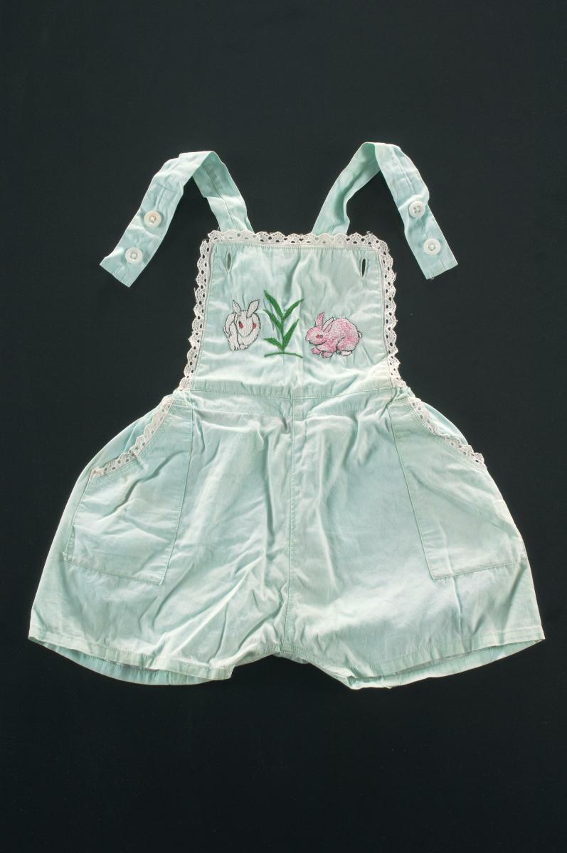 This is a green and pink band that was made for a child to wear.This artefact belonged to donor Ms. Angeline Lee Seow Luan’s mother, Mdm. Lim Hwee Luan, a skilful embroider and sewer who worked at the Capitol Embroidery and Dress-making School in the 1950s. With her skills, she embroidered various designs on clothes for her children. She also made her own wedding dress and cheongsam for her wedding. Most women in the 1950s and 1960s were good at sewing and embroidery work.