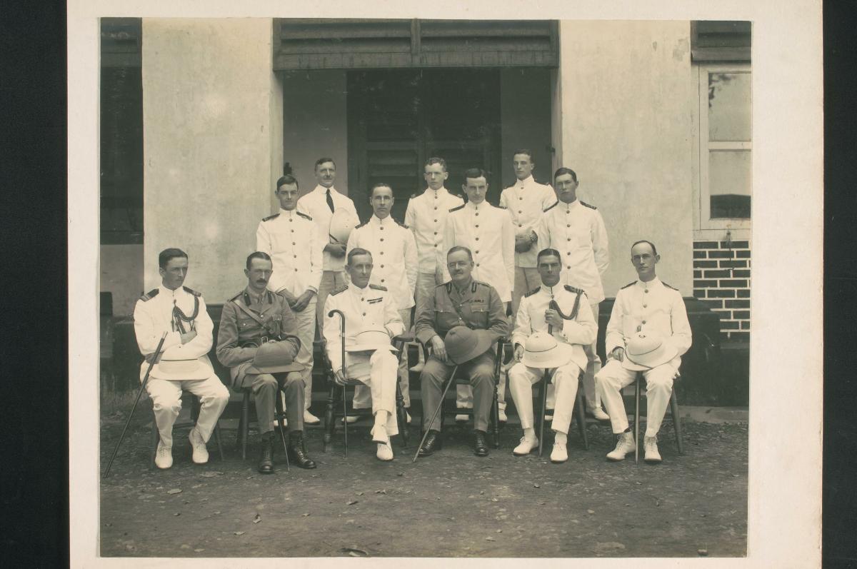 This is probably a photo of a British military officer stationed at the garrison at Fort Canning.Originally called ‘Bukit Larangan’ (meaning ‘forbidden hill’) by the Malays due to the belief that it was once a royal burial site for the kings of old, Fort Canning Hill was first used by the British as the site for the Government House in 1822. It was thus referred to as Government Hill until 1861 when a fort was completed on the hill and named after Viscount Charles John Canning, the Governor-General and First Viceroy of India. The European artillerymen, originally stationed at Pearl’s Hill, then moved to the military quarters at Fort Canning. Various buildings were constructed on the hill for the garrison stationed there, including a hospital. The fort was eventually demolished in 1907, with only the archway entrance still standing today. The hill was also where the first Botanic Gardens was established between 1822 to 1829 under Dr Nathaniel Wallich, although no trace of it remains today.