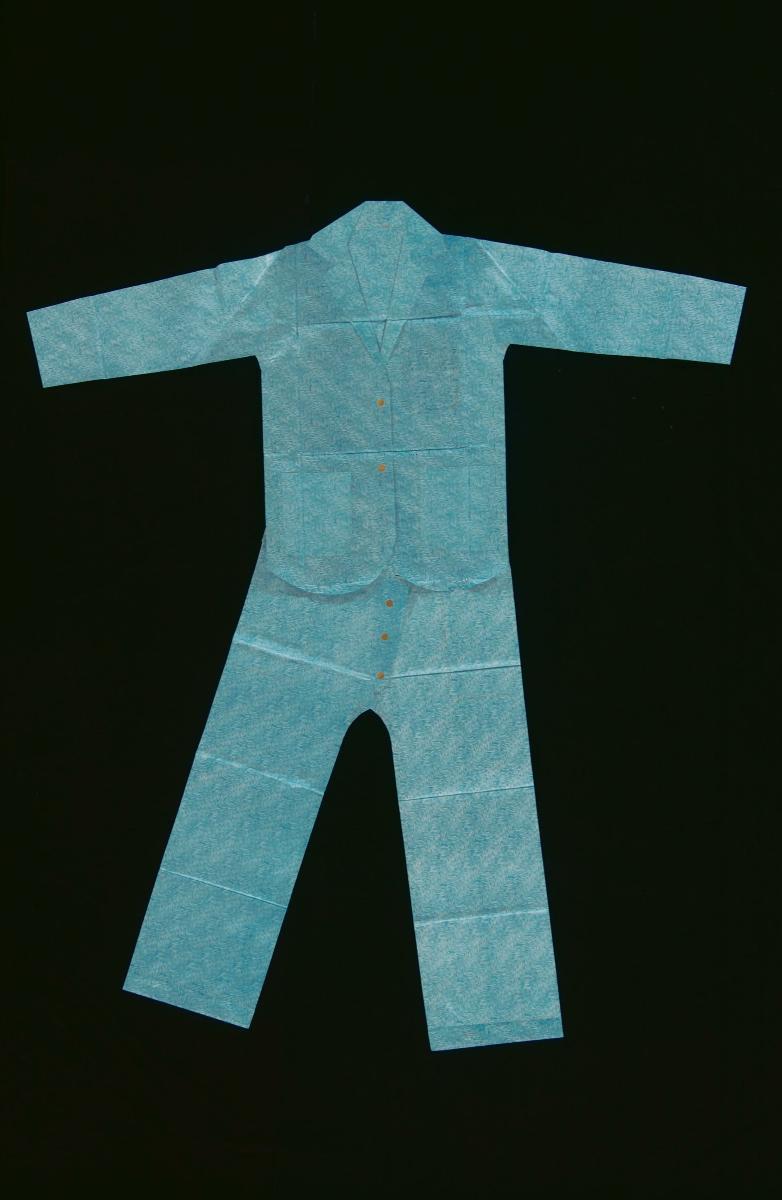 This paper ensemble comprising of a shirt and a pair of pants is burnt as an offering to a male ancestor or deceased. Burnt offerings are integral to Taoist worship and rituals. Offerings are burnt as gifts during temple festivals to commemorate the birthdays of deities. At Taoist funerals and religious ceremonies, burnt offerings are made to ensure that the deceased, or an ancestor, enjoys a comfortable life in the netherworld. The articles burnt as offerings are made from paper and are often imitations of real objects. They can be purchased from shops dedicated to selling these religious paraphernalia, which are referred to locally as “paper shops”. These shops sell a wide range of items, from elaborately decorated paper houses, cars and furniture, to bank notes and garments. The paper garments are usually life-size and the more elaborate ones follow the iconographic conventions of opera costumes closely. Chinese operas are performed as part of Taoist religious festivities.