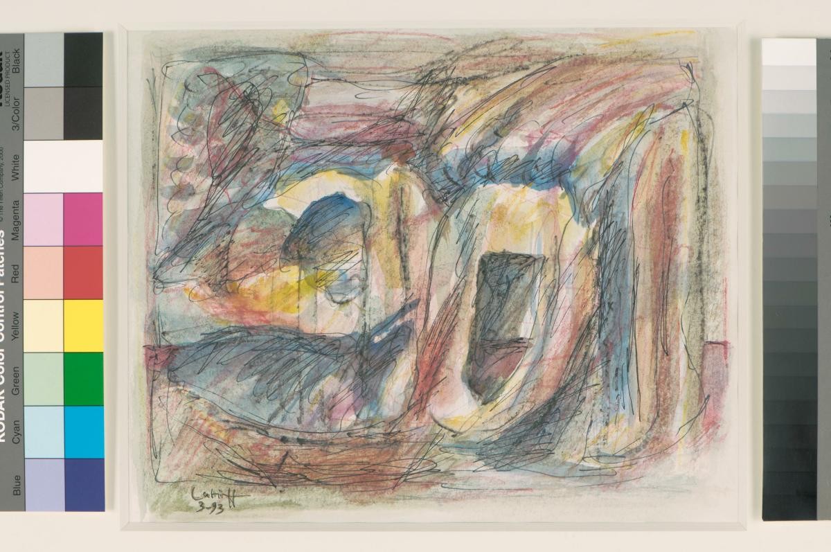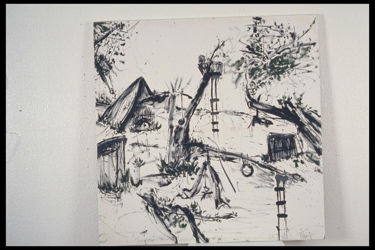 Latiff Mohidin, born in Negeri Sembilan, Malaysia in 1941 completed his primary education in Singapore. While in Singapore, at an early age, Latiff’s precocity in understanding paintings earned him the nickname, ‘Wonder Boy’. From 1960-1964, Latiff studied art at Hochschule fur Bildende Kunste in Berlin, Germany and did brief residencies in Paris and New York. Inspired by his exploration of Southeast Asia in 1964, Latiff has since produced compelling series of artworks – the result of a synthesis between his European experience and the rediscovery of his homeland. He is also a poet who has published several volumes of poetry. Latiff started to use landscape as a subject and composition in the 1950s. The Landscape series can be seen as his tendency of translating studies of nature towards abstraction. This includes analytical studies of plant life, mountains and beaches from his previous oeuvres. ‘Landscape (3)’ is a sketch ‘erased’ with bold brushstrokes attempting to enshroud the visibility of the initial landscape. It could signify Latiff’s way of ‘unlearning’ the conventions of landscape drawing: by erasing the ‘old’ to make way for the ‘new’.
