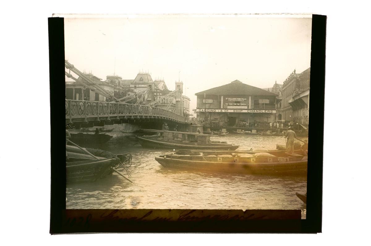 Prior to George Eastman’s invention of rolled photographic films in 1883, glass plates coated with light-sensitive materials were used as negatives. Two main types of glass plate negatives were invented in the latter half of the 19th century – the wet collodion negative in 1851 and the gelatin dry plate negative in 1879. After exposure, an image captured on a glass plate negative would be developed using chemicals, and subsequently printed onto an albumen-coated paper or a glass plate. Images printed on the latter were known as glass lantern slides as they could be projected onto a wall or screen using an image projector, commonly called a “magic lantern”. Picture slideshows featuring glass lantern slides became a popular medium for entertainment and education from the mid-19th century to the early 20th century. The black-and-white slides would often be colour-tinted by hand to enhance their visual effects on the screen.