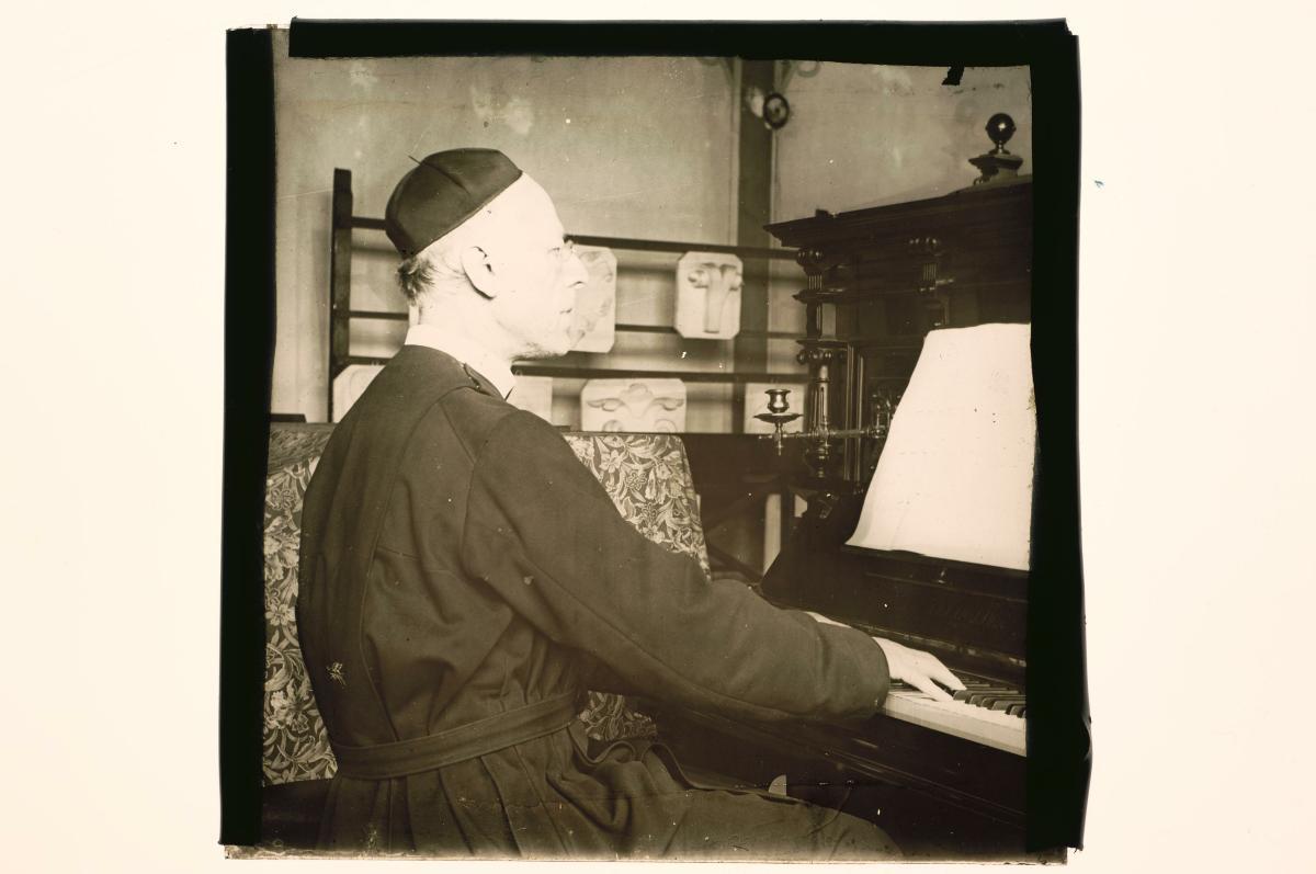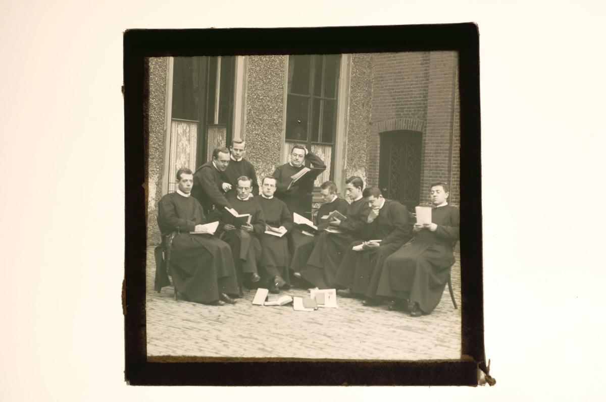 A glass lantern slide depicting a friar