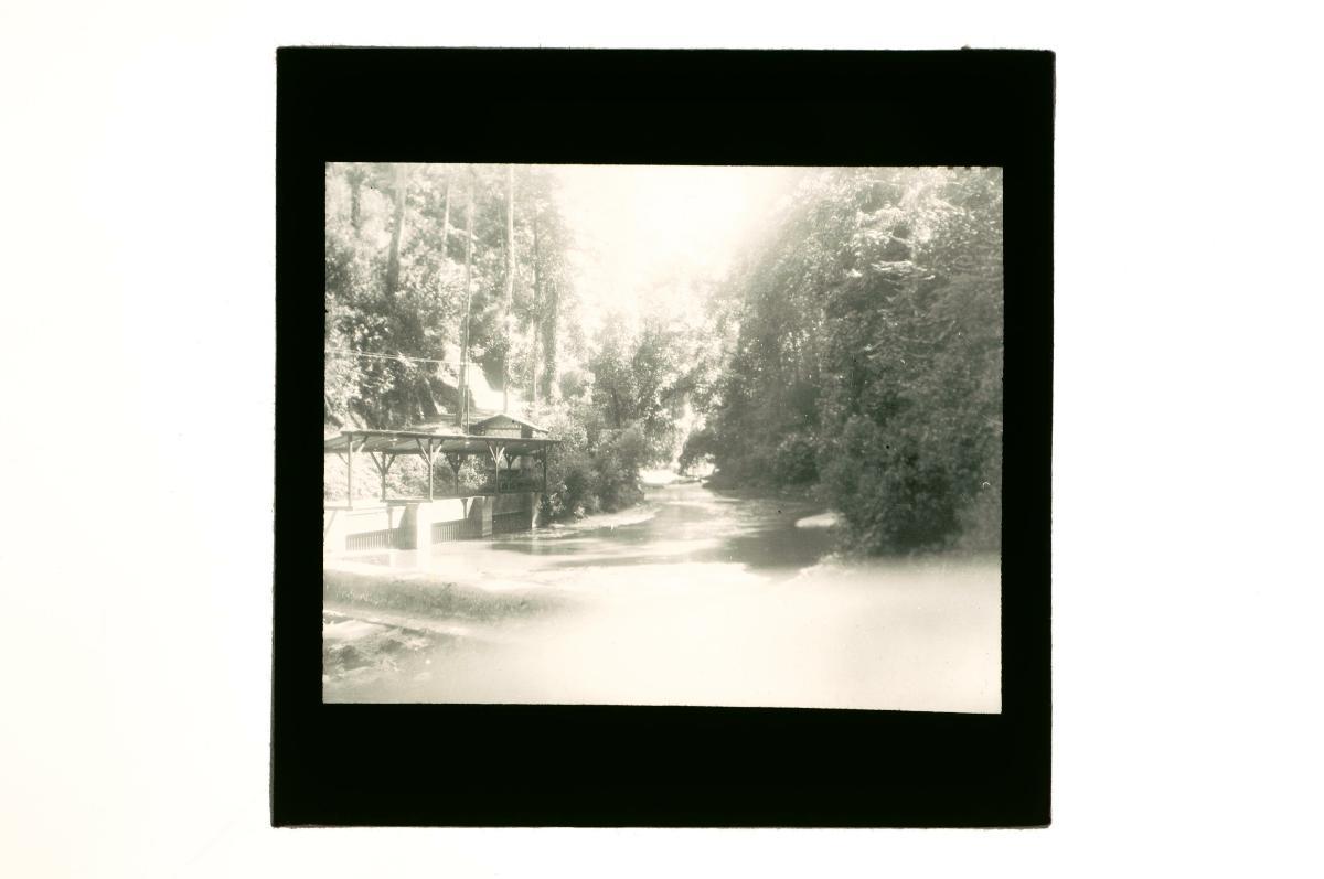 Prior to George Eastman’s invention of rolled photographic films in 1883, glass plates coated with light-sensitive materials were used as negatives. Two main types of glass plate negatives were invented in the latter half of the 19th century – the wet collodion negative in 1851 and the gelatin dry plate negative in 1879. After exposure, an image captured on a glass plate negative would be developed using chemicals, and subsequently printed onto an albumen-coated paper or a glass plate. Images printed on the latter were known as glass lantern slides as they could be projected onto a wall or screen using an image projector, commonly called a “magic lantern”. Picture slideshows featuring glass lantern slides became a popular medium for entertainment and education from the mid-19th century to the early 20th century. The black-and-white slides would often be colour-tinted by hand to enhance their visual effects on the screen.