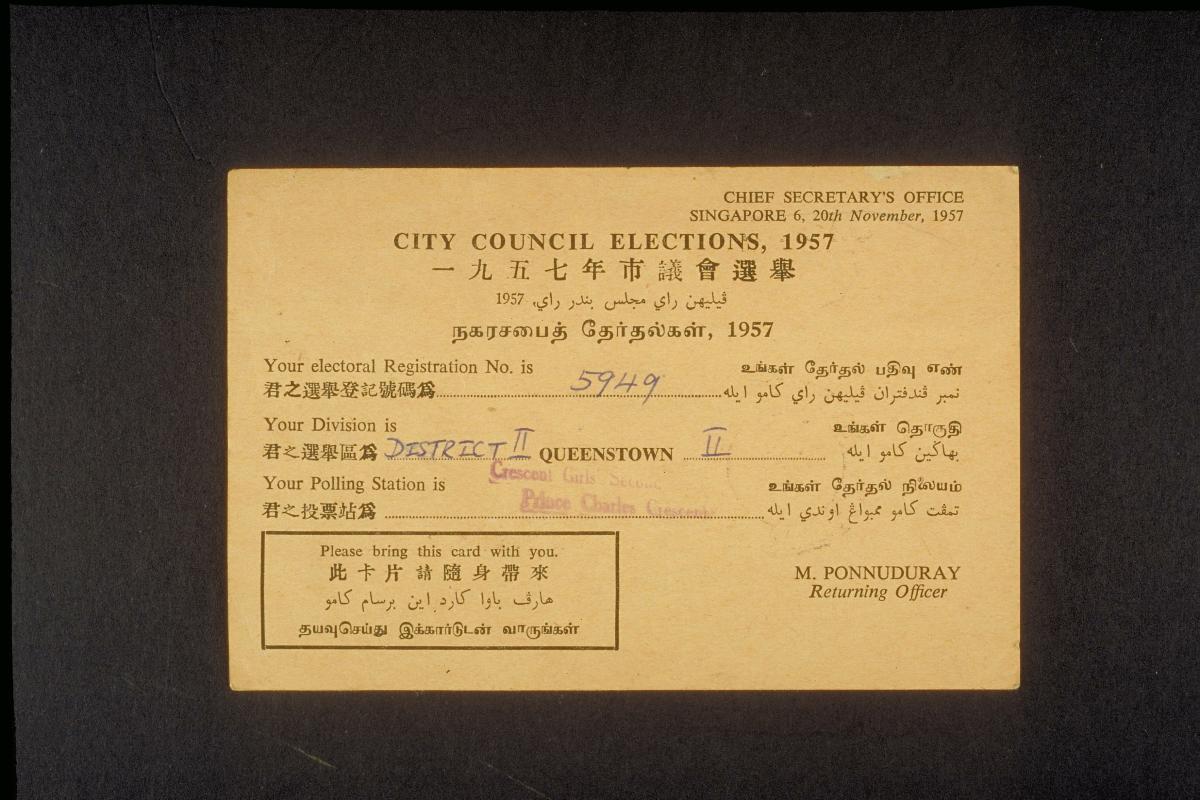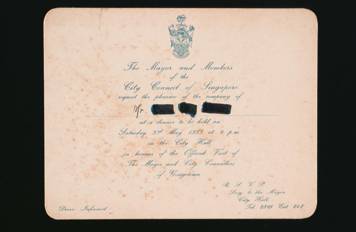 City Council of Singapore acknowledgement card