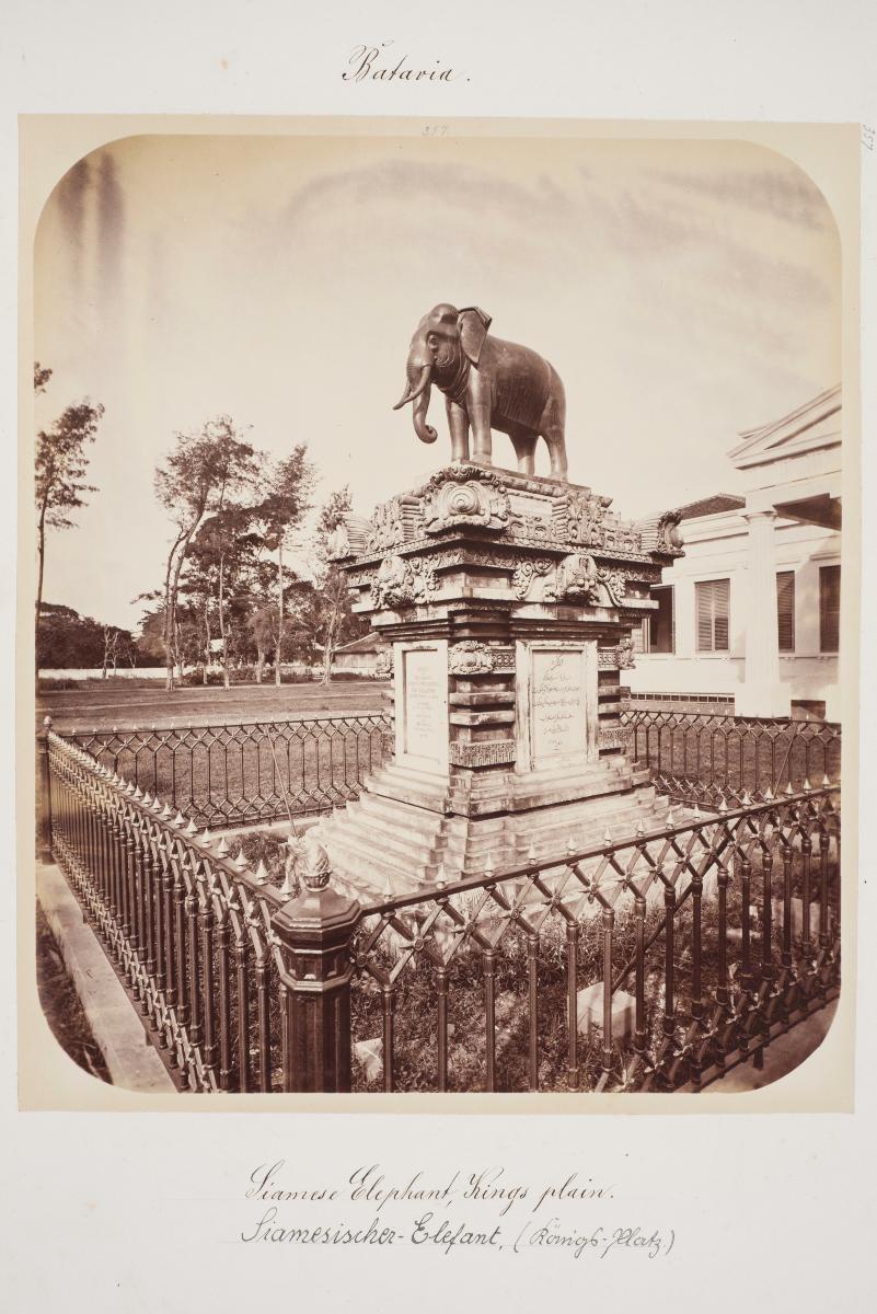This is a statue of the Hindu god, Ganesha, found amidst the ruins of a temple at Singasari, East Java. Woodbury and Page was a photo studio founded by Englishmen Walter Bentley Woodbury and James Page in Batavia (now Jakarta) on 5 June 1857. The younger Woodbury brothers, Henry James and Albert, joined the enterprise subsequently. It remained active right up to 1908, even after the departure of its original owners. In addition to studio portraits, Woodbury and Page also travelled around the Dutch East Indies, capturing a range of subjects which included royal personages, the common people, landscapes and scenes of everyday life. Though they were not the earliest photographers in Java, their prolific works are now considered classic and lauded for providing valuable insights into Indonesia in the colonial era.Apart from being an avid photographer, Woodbury was also famous for inventing a photo developing technique, which was patented as the Woodburytype on 23 September 1864. He took out no less than 20 patents between 1864 and 1884 and was dubbed the ‘Einstein of photography’ by his peers.