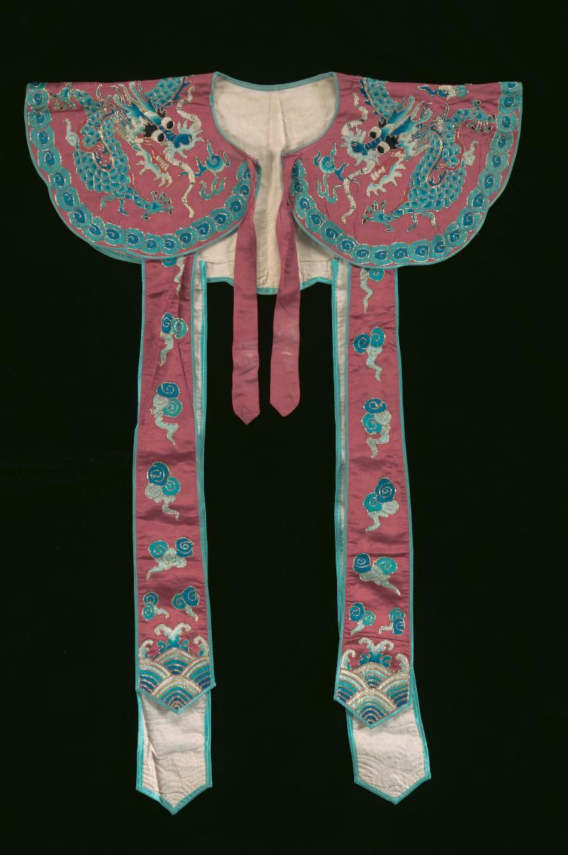 A blue shoulder piece with orange dragon motifs worn by a ‘wu sheng’ in a Chinese opera