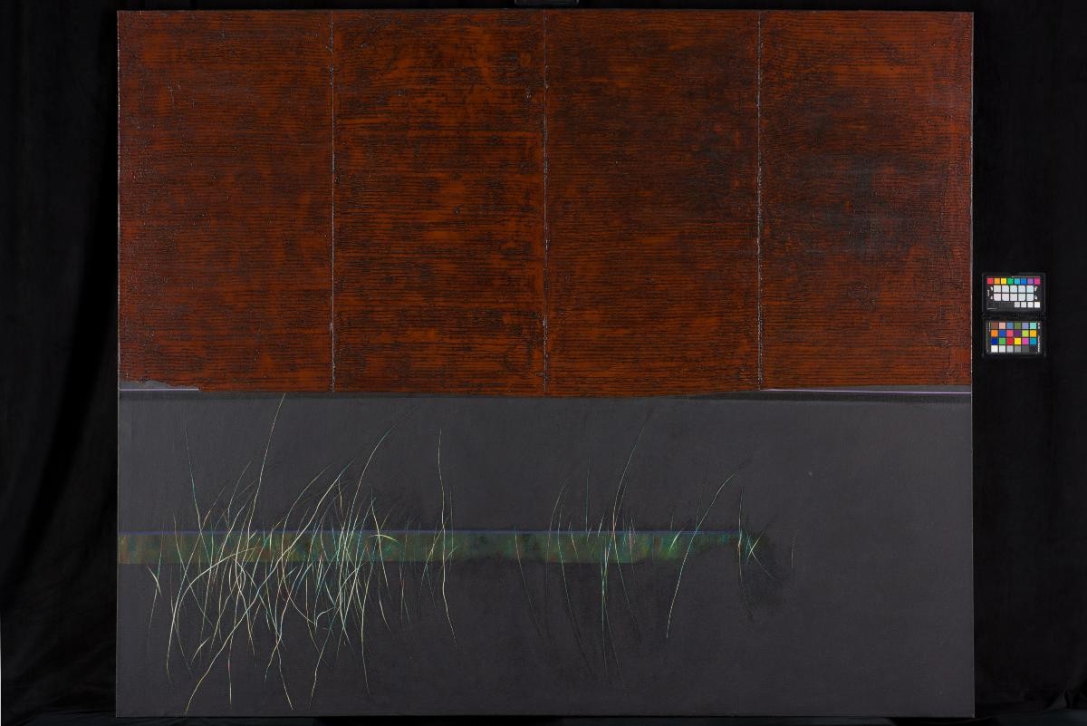 Latiff Mohidin, born in Negeri Sembilan, Malaysia in 1941 completed his primary education in Singapore. While in Singapore, at an early age, Latiff’s precocity in understanding paintings earned him the nickname, ‘Wonder Boy’. From 1960-1964, Latiff studied art at Hochschule fur Bildende Kunste in Berlin, Germany and did brief residencies in Paris and New York. Inspired by his exploration of Southeast Asia in 1964, Latiff has since produced compelling series of artworks – the result of a synthesis between his European experience and the rediscovery of his homeland. He is also a poet who has published several volumes of poetry. Latiff started to use landscape as a subject and composition in the 1950s. The Landscape series can be seen as his tendency of translating studies of nature towards abstraction. This includes analytical studies of plant life, mountains and beaches from Latiff’s previous oeuvres. ‘Landscape (2)’ is a complete abstraction of an indefinite reference of nature. The broad brushstrokes that are painted in a fluid manner can be perceived as the process of disintegration of forms due to the mobilization of energy fields.