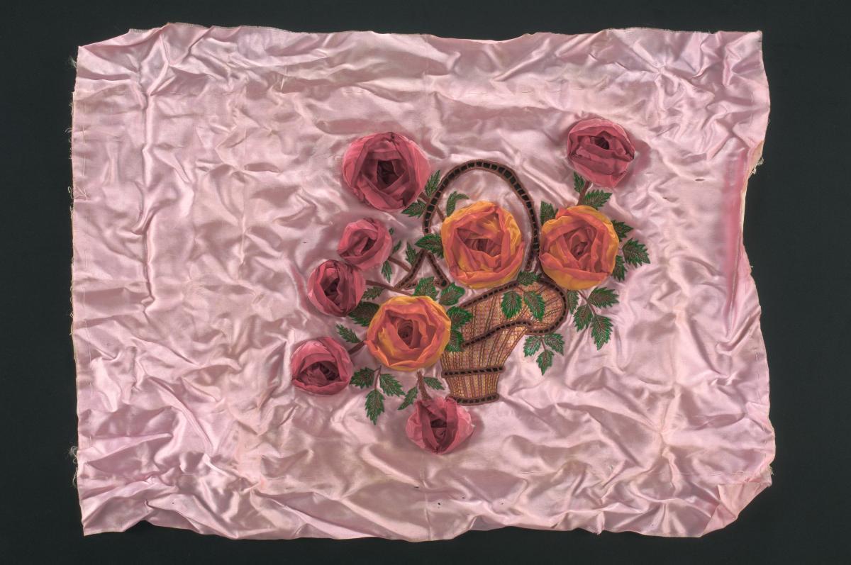 This is a piece of pink cloth with an embroidered floral motif.This artefact belonged to donor Ms. Angeline Lee Seow Luan’s mother, Mdm. Lim Hwee Luan, a skilful embroider and sewer who worked at the Capitol Embroidery and Dress-making School in the 1950s. With her skills, she embroidered various designs on clothes for her children. She also made her own wedding dress and cheongsam for her wedding. Most women in the 1950s and 1960s were good at sewing and embroidery work.