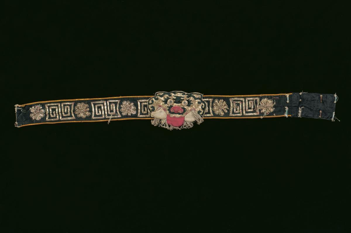 A black waist piece with gold dragon motifs worn by a ‘wu sheng’ in a Chinese opera