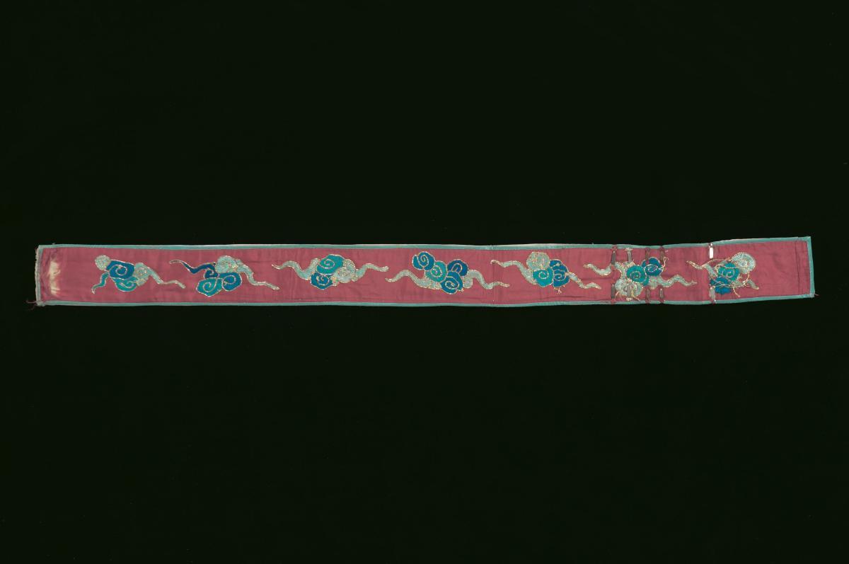A pink shoulder piece with blue dragon motifs worn by a ‘wu sheng’ in a Chinese opera
