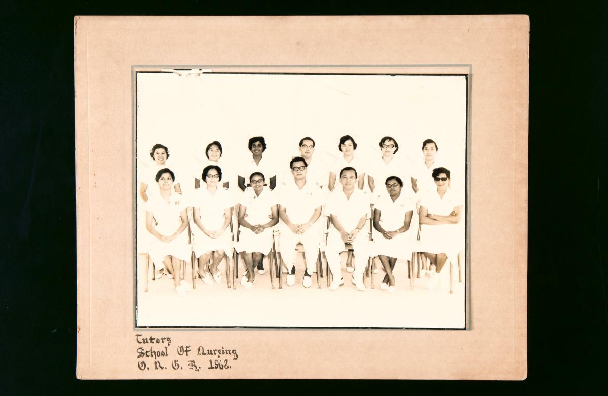 This is a photograph showing a group of tutors from the Outram Road General Hospital School of Nursing.