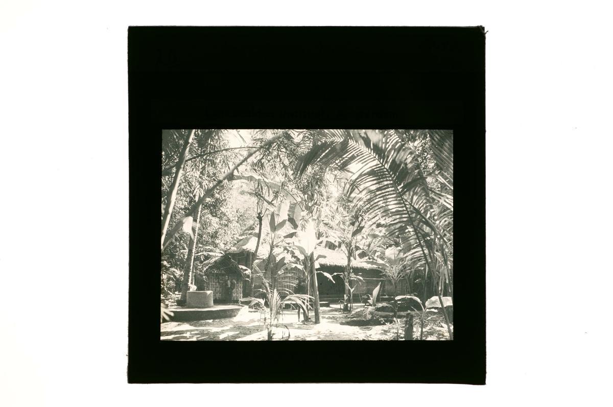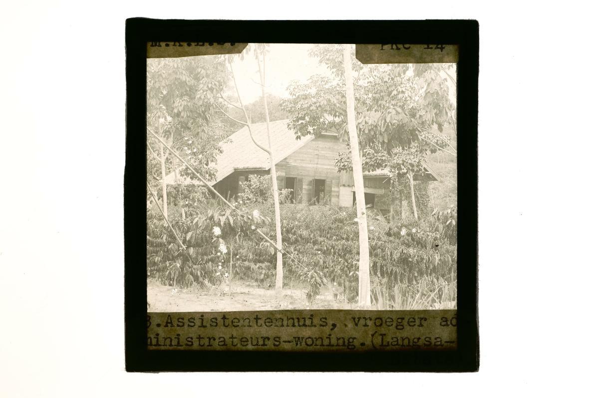 A glass lantern slide depicting two houses