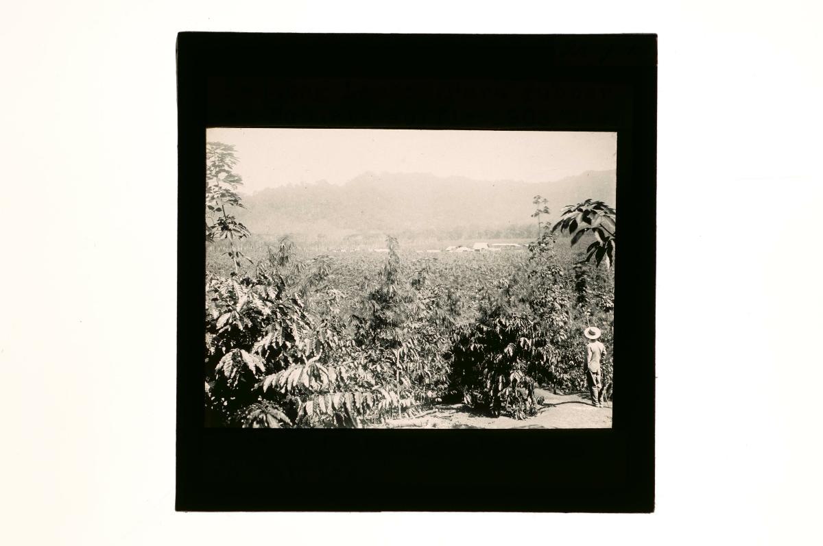 A glass lantern slide depicting a rural landscape