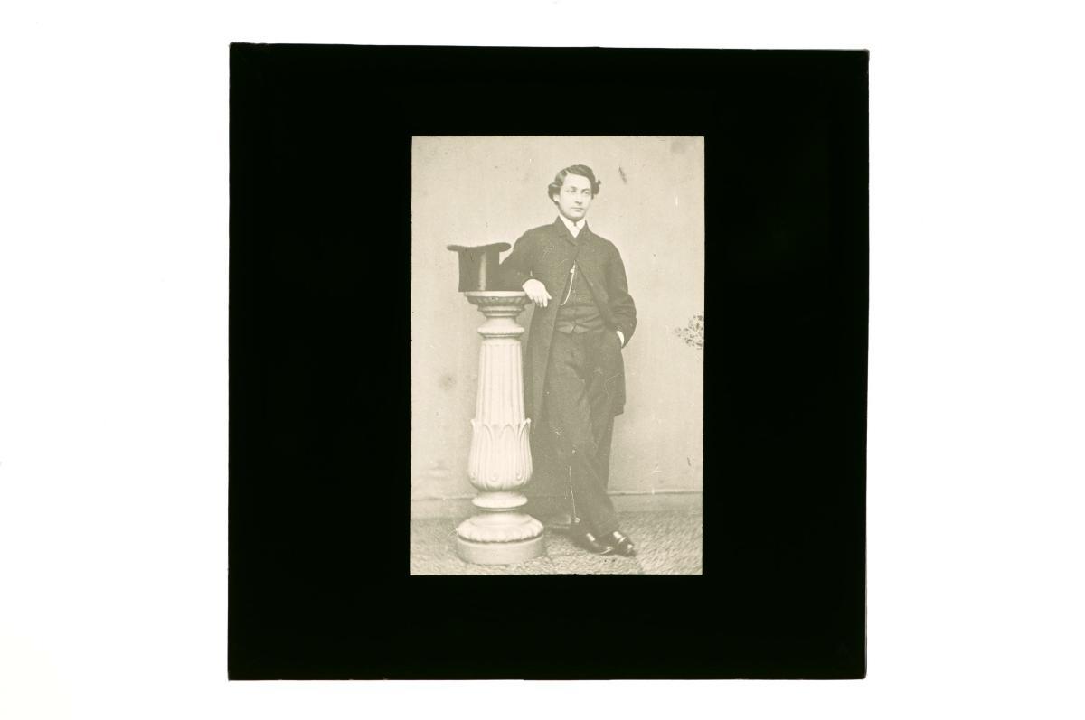 Prior to George Eastman’s invention of rolled photographic films in 1883, glass plates coated with light-sensitive materials were used as negatives. Two main types of glass plate negatives were invented in the latter half of the 19th century – the wet collodion negative in 1851 and the gelatin dry plate negative in 1879. After exposure, an image captured on a glass plate negative would be developed using chemicals, and subsequently printed onto an albumen-coated paper or a glass plate. Images printed on the latter were known as glass lantern slides as they could be projected onto a wall or screen using an image projector, commonly called a “magic lantern”. Picture slideshows featuring glass lantern slides became a popular medium for entertainment and education from the mid-19th century to the early 20th century. The black-and-white slides would often be colour-tinted by hand to enhance their visual effects on the screen.