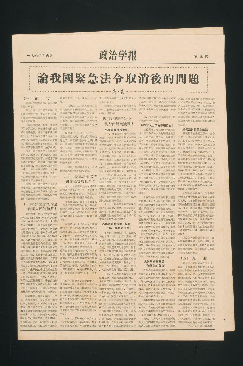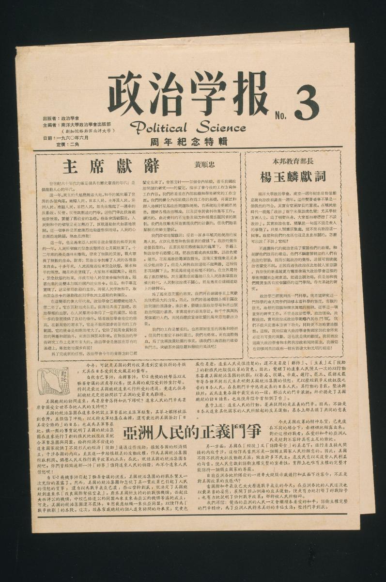 'Political Science' journal published by Nanyang University Political Science Society No. 3