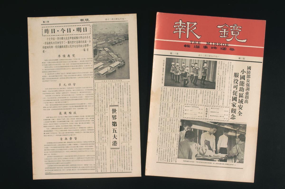 The Mirror, initially called the Malaysian Mirror, was a weekly current affairs magazine that was first published by Singapore’s Ministry of Culture (now Ministry of Information, Communications and the Arts) in March 1965. The brainchild of Singapore’s then Minister for Culture, Mr. S. Rajaratnam, the magazine consisted mainly of reproduced articles from Malaysian and foreign newspapers and was distributed to public organizations and civil bodies for free. The magazine’s distribution to schools in Malaya sparked a war of words between Mr. Rajaratnam and Federal Education Minister Inche Mohamed Khir Johari in July 1965, at the height of tensions between Singapore and the Malayan Federation. Inche Johari had alleged that the Singapore government was using the magazine to spread subversive propaganda. The Malaysian Mirror was renamed The Mirror when Singapore gained independence in August 1965. In the 1970s, it was published fortnightly and contained more original articles on domestic issues written by staff from the Culture Ministry and other statutory boards. The Mirror reinvented itself again in the mid-1980s and was renamed Mirror, which targeted students. It started selling subscriptions in 1988. The last edition of Mirror was published on 15 September 1991.