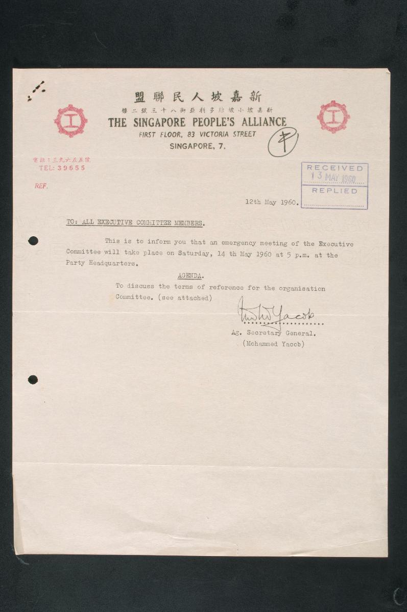 A Singapore People’s Alliance (SPA) circular on a dinner party organized by its Muslim members