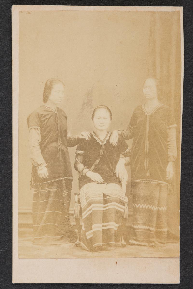 This carte de visite comes from a group of 44 images of Southeast Asia, thought to have been collected by a visitor to the region in the second half of the nineteenth century. The carte de visite format - a small photograph pasted onto a card backing - was popularised as a souvenir in the mid nineteenth century. This group of photographs is indicative of the type of imagery that was popularised through the circulation of cartes de visite. It shows both generic images of local “types,” as well as various posed images of local dignitaries (such as King Norodom of Cambodia). As such, the group offers an insight into the work of the commercial photo studio in Southeast Asia in the nineteenth century.