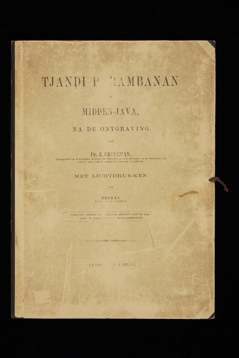 This is the inside page of ‘Candi Prambanan in Central Java’, a folio containing a rare and extensive photographic survey of the Javanese-Hindu temple (also known as Candi Lara Jonggrang) on the Prambanan Plains, around 20 kilometres east of Yogyakarta. This Borobudur associated site was built in the 9th century. The research was complied by Dr. Isaac Groneman, a Dutch medical doctor who wrote many books about Javanese history and culture. He was also the Honorary President of the Archaelogical Society in Yogyakarta at the time when society undertook the excavation of the Prambanan temples from 1889 to 1890. Dr. Groneman was assisted by pioneer Indonesian photographer Kassian Cephas, who was responsible for the pictorial documentation of the project. Cephas was also the court photographer to the Sultan at Yogyakarta. This portfolio details the temple and sculptured reliefs narrating the Hindu epic tale, the ‘Ramayana’, within the complexes of the Candi Prambanan.
