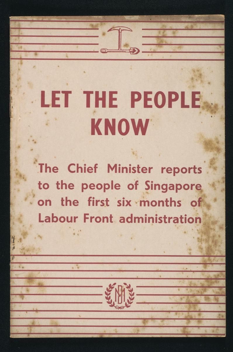 Founded in 1955, the Labour Front (LF) was a political party that was formed from the merger of two parties, the Singapore Labour Party (SLP) and the Singapore Socialist Party (SSP). Amongst its founding members were David Marshall, Lim Yew Hock and Francis Thomas. The LF contested in the 1955 Legislative Assembly Election and secured the most votes. As it did not win by a majority, the LF formed a coalition government with the Singapore Alliance Party and Marshall became Singapore’s first Chief Minister. The LF government, however, lasted for only one term, with Marshall resigning from his post in 1956 following the breakdown in negotiations with the British for Singapore’s self-government. The LF subsequently merged with the Liberal Socialist Party (LSP) to form the Singapore People’s Alliance (SPA) in 1958. The SPA fared badly in the 1959 Legislative Assembly Election, securing only four seats. It did not win any seats in the 1963 General Election and was dissolved in 1965 after Singapore gained independence.