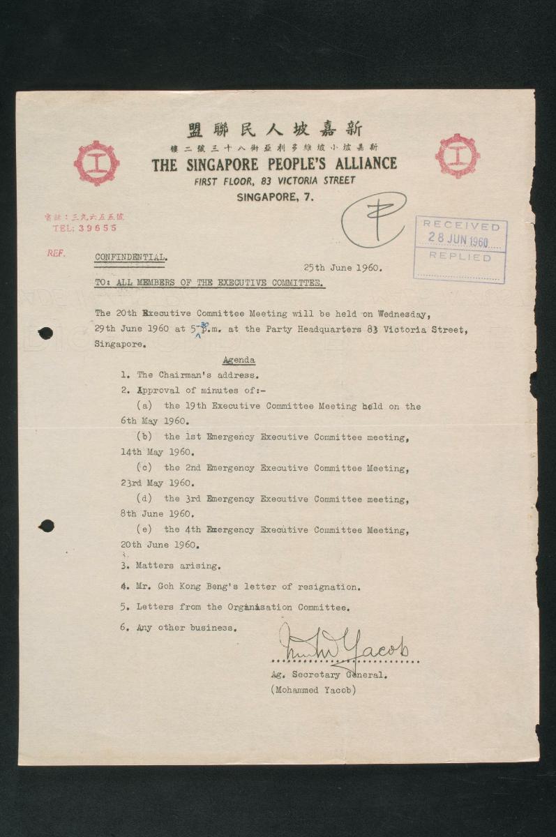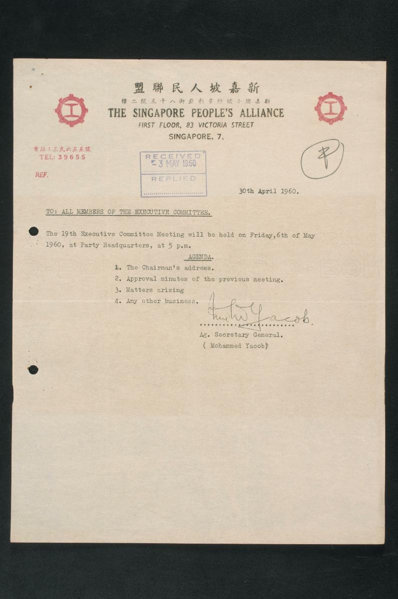 A Singapore People’s Alliance (SPA) circular on the inaugural Good Citizenship Committee Meeting