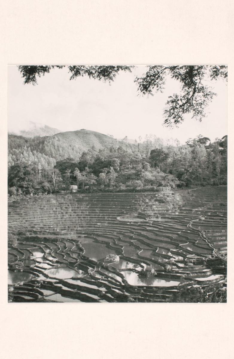 The picture here shows the reordering of nature that was carried out to cultivate tobacco commercially. This was done at great expense to both nature and human life. Tobacco plants not only took up space but also quickly exhausted the nutrients in the soil. To satisfy their need for large tracts of land, the tobacco planters cleared the rich primeval forests. In the upland estates, this caused tremendous erosion of the top fertile layer that was filled with volcanic substances. Even terracing as shown here did not help, and after a couple of harvests, such lands were abandoned.