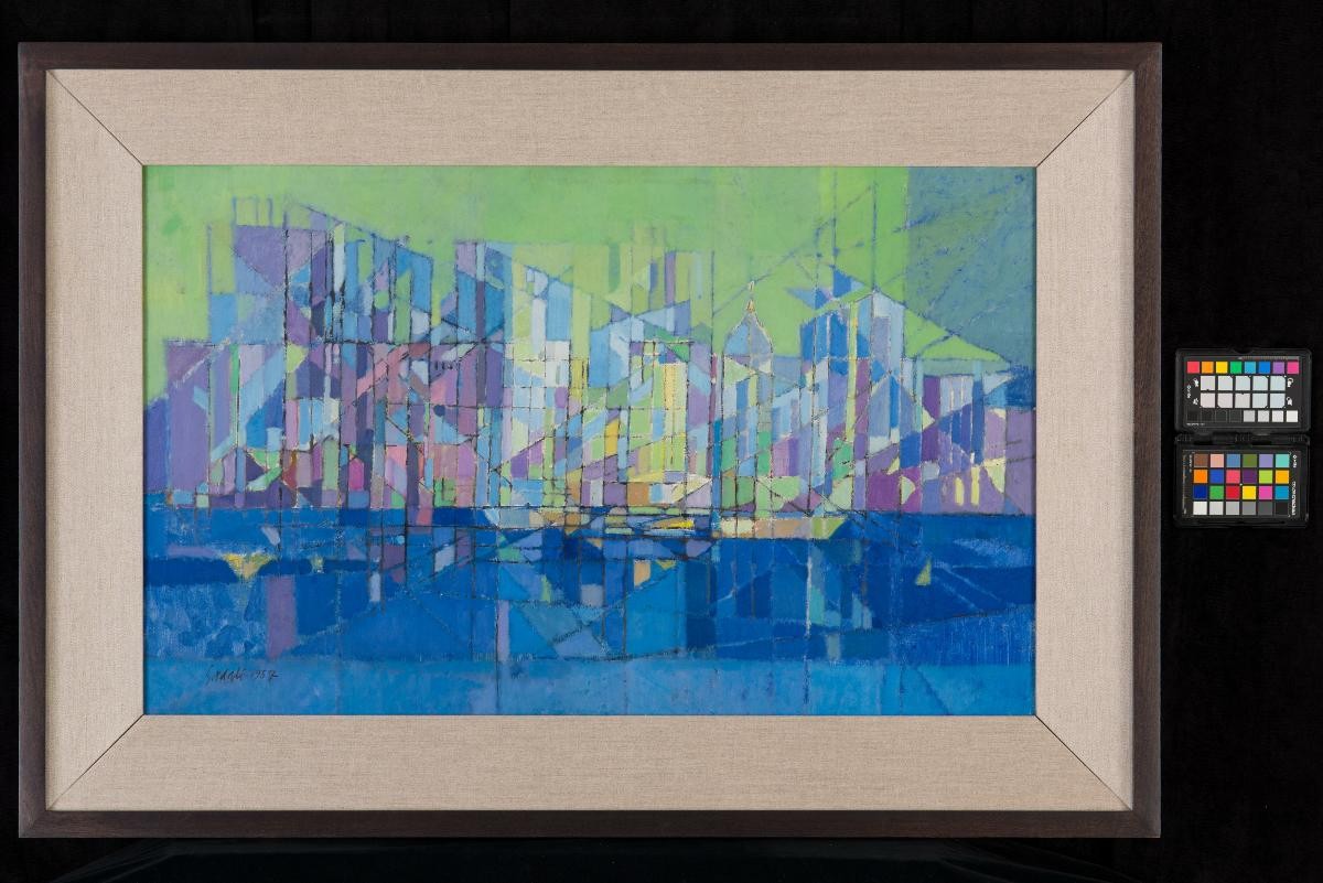 Latiff Mohidin, born in Negeri Sembilan, Malaysia in 1941 completed his primary education in Singapore. While in Singapore, at an early age, Latiff’s precocity in understanding paintings earned him the nickname, ‘Wonder Boy’. From 1960-1964, Latiff studied art at Hochschule fur Bildende Kunste in Berlin, Germany and did brief residencies in Paris and New York. Inspired by his exploration of Southeast Asia in 1964, Latiff has since produced compelling series of artworks – the result of a synthesis between his European experience and the rediscovery of his homeland. He is also a poet who has published several volumes of poetry. ‘New York’ can be seen as an abstract of ‘Composition, New York’, and ‘Komposisi, New York’, both of which comprise multiple stacked and overlapped keys. It could have resulted from Latiff’s venture of scrutinizing his previous work of architectonic tendency. Here, the image seems like a mobilization of the overlapping keys – a transformation from a static pictorial to a movement representing nature’s energy. ‘New York’ may well be regarded as Latiff’s tendency of translating studies towards abstraction.