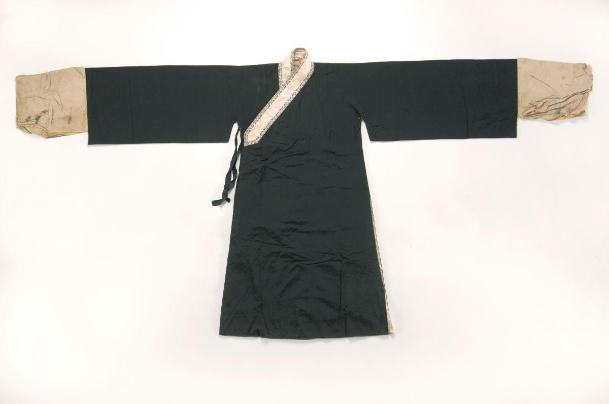 A black robe with floral embroidery worn by a ‘lao dan’ in a Chinese opera
