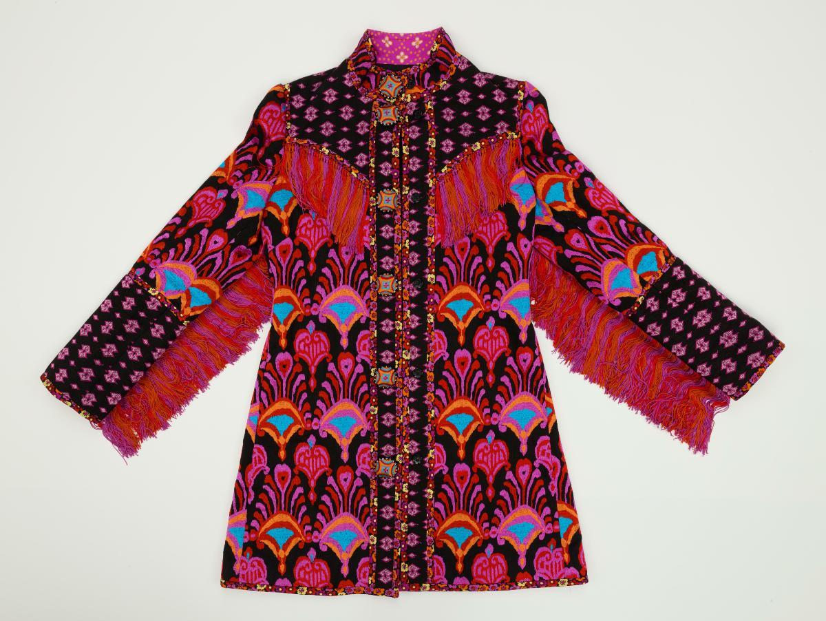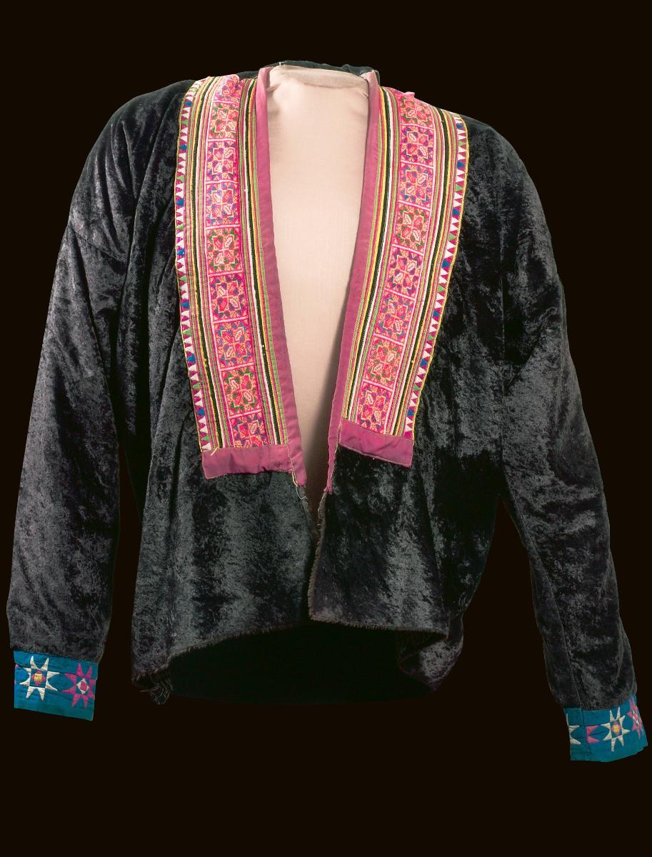 This jacket features a pattern of ornate column with flowers and vines. Printed in Europe in imitation of Southeast Asian and Indian textiles designs.Large quantities of Indian textiles produced in various centres in Gujarat, the Deccan and Coromandel Coast were traded across Southeast Asia until the end of the 19th century. Among their functions, they served as attire for royalty and as diplomatic gifts, as displays on festive occasions, and as clothing for the populace at rites of passage and other ceremonies. These trade cloths had a strong influence on the development of Southeast Asia textiles as it is thought local makers began producing cloth, possibly borrowing patterns and motifs from earlier Indian examples, to make up for the shortage of the Indian ones that began to decline in numbers.