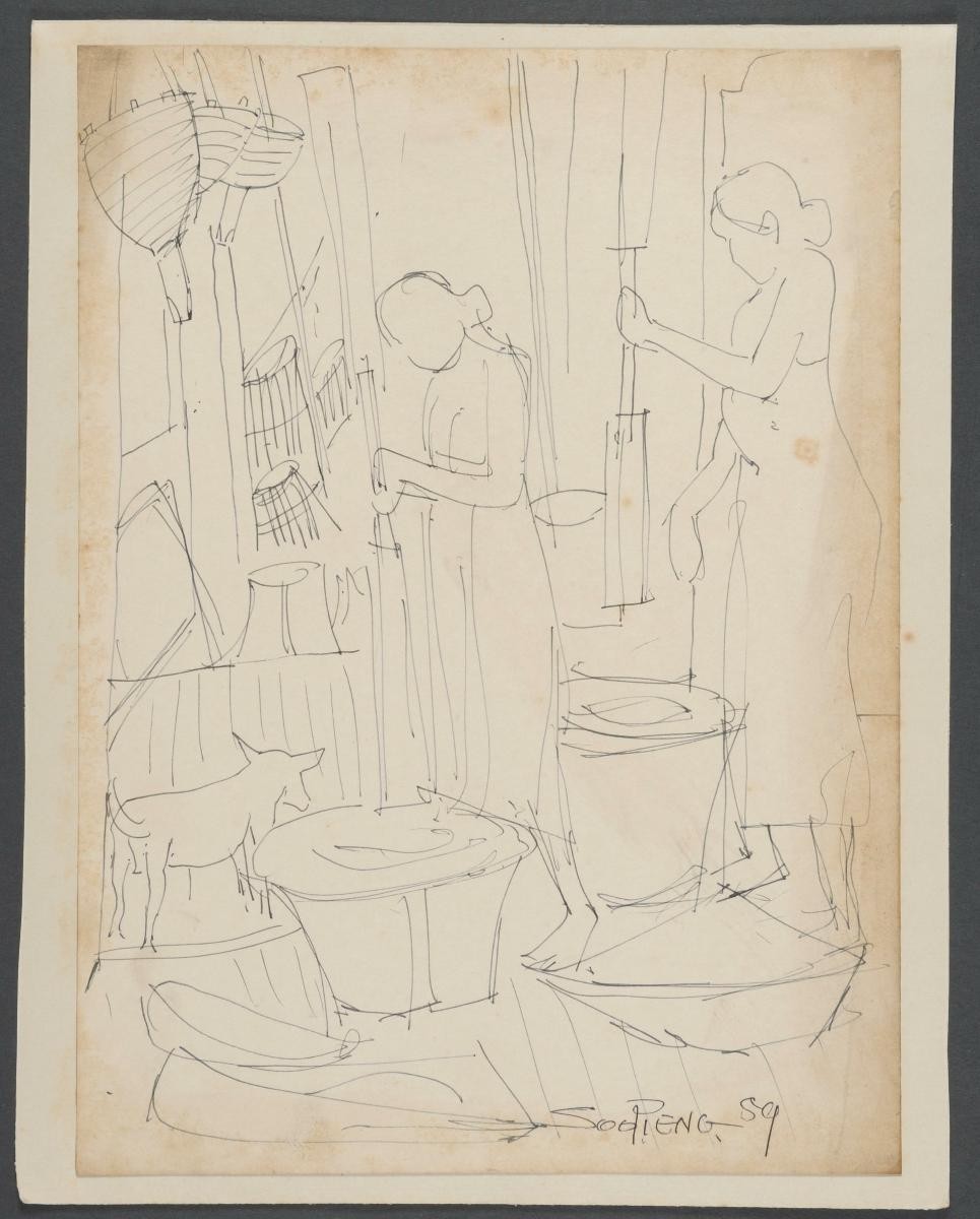Cheong Soo Pieng was born in Amoy, China in 1917. He studied at the Amoy Art Academy and the Xinhua Academy of Fine Arts in Shanghai from 1933 to 1936. In 1946, Cheong settled in Singapore and taught at the Nanyang Academy of Fine Arts until 1961. Together with fellow artists Chen Wen Hsi, Chen Chong Swee and Liu Kang, they went to Bali, Indonesia in 1952 in search of new inspiration and subject matter. Cheong had a dominant influence on the development of modern art in Singapore and is regarded as one of Singapore’s pioneer artists. His innovative experimentations towards developing his stylistic oeuvre had a great influence on his students, many of whom later became established artists in the region. For his contributions in art, he was awarded the Meritorious Service Medal by the Singapore government in 1962. Cheong passed away in 1983 in Singapore.
