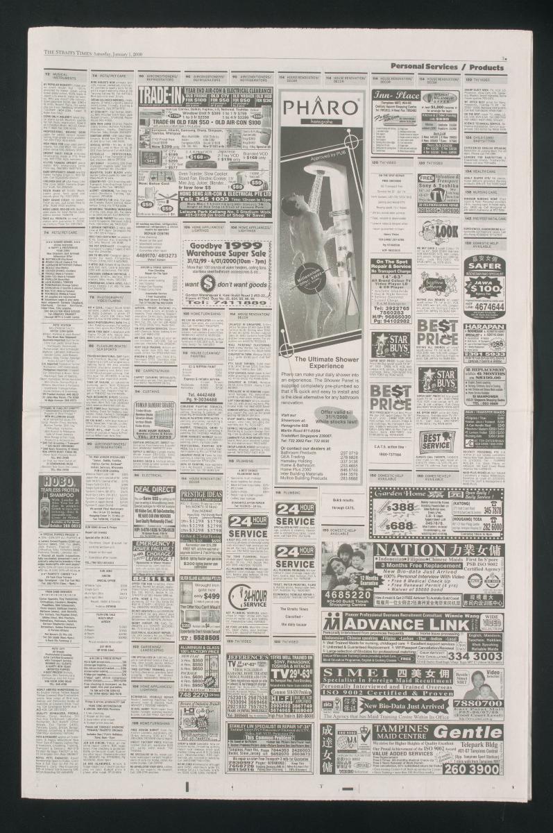 The Straits Times is an English language broadsheet daily newspaper. It is the most widely-circulated and oldest surviving newspaper in Singapore. The paper was established on 15 July 1845 by Armenian businessman Catchick Moses and was originally known as The Straits Times and Singapore Journal of Commerce. The Straits Times is currently owned by Singapore Press Holdings. This particular edition of the Straits Times is significant as it is the first Straits Times edition of the 21st century.