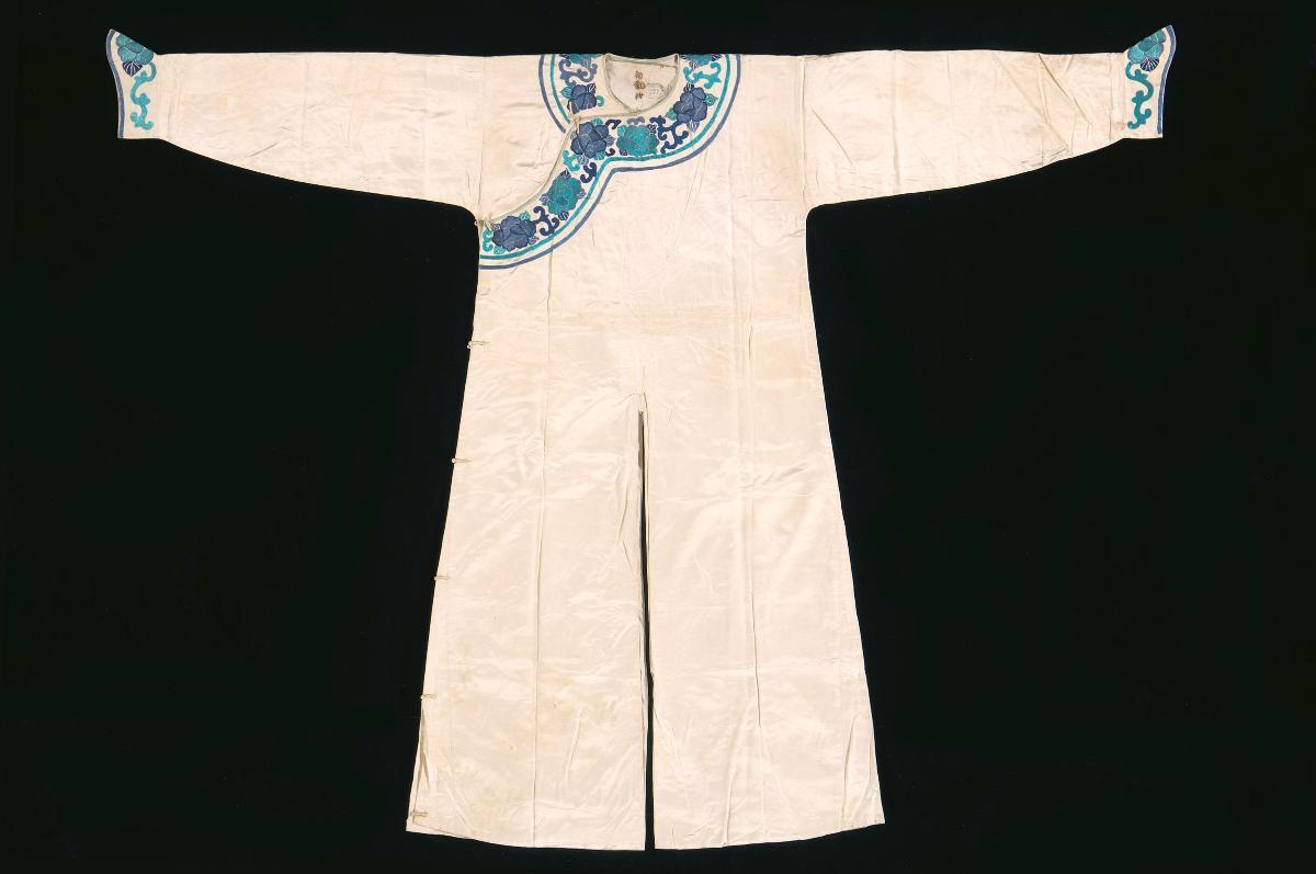 A blue robe with floral embroidery worn by a ‘wen xiao sheng’ in a Chinese opera