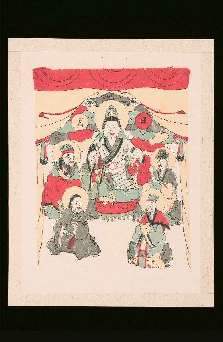 Chinese woodblock print depicting an altar and a blank space for ancestor’s portrait to be painted