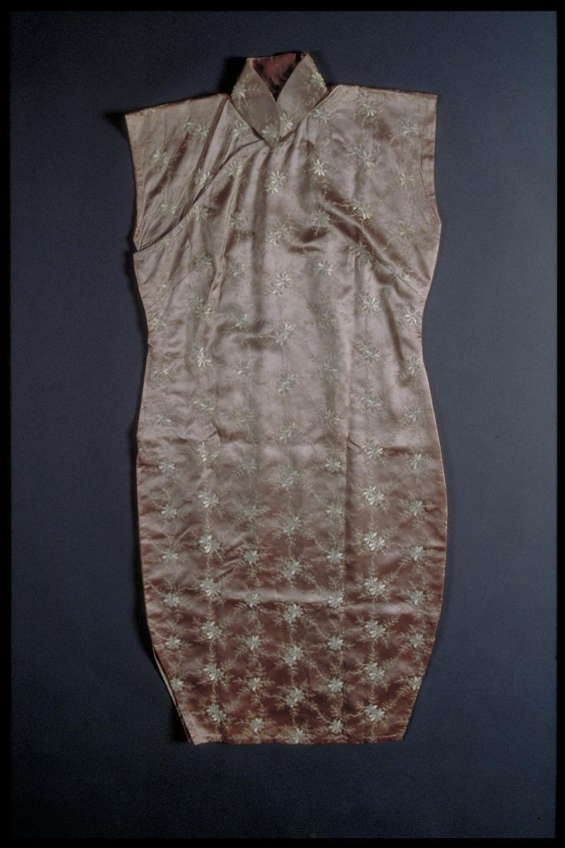 This black sleeveless wool cheongsam belonging to the late Christina Lee, is decorated with pink embroidery and black piping. The high collar and body hugging silhouette suggest that it is from the 1950s and 1960s. Christina Lee was married to Datok Loke Wan Tho from 1950 to 1962. She was a style icon remembered for cladding in cheongsam.